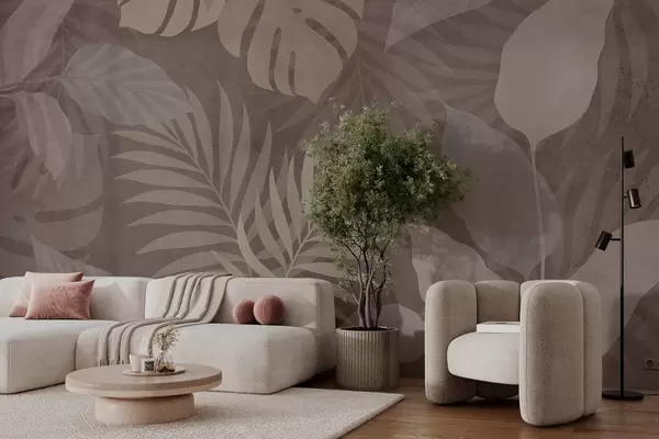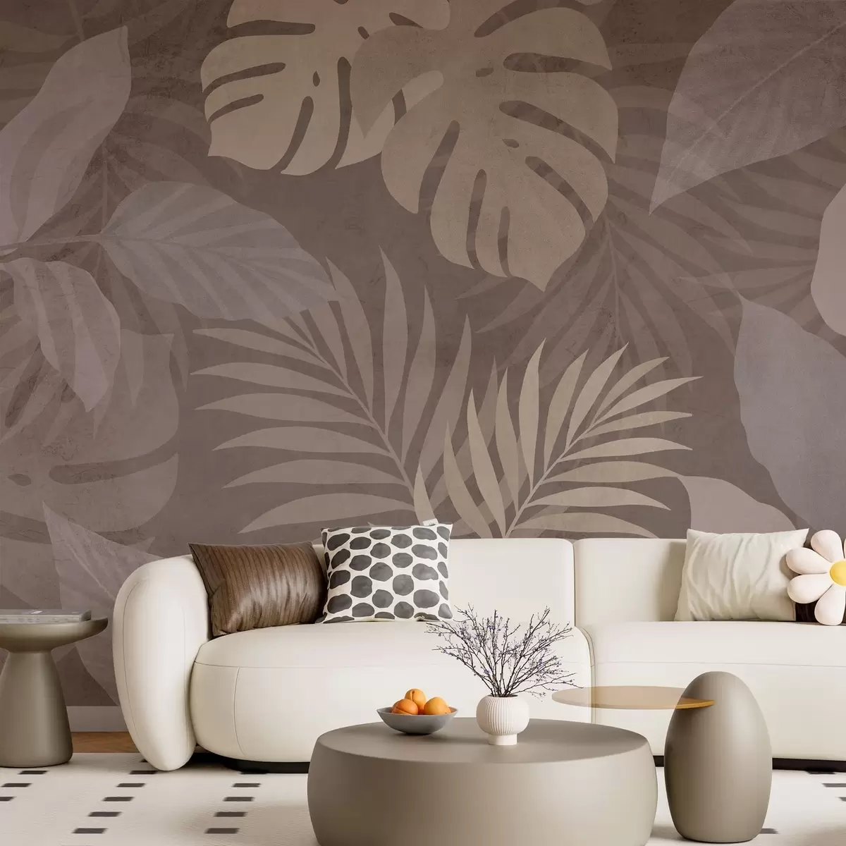 Fototapeedid tekstuuriga troopilised lehed šokolaadipruuni taustal Nr w05063v2