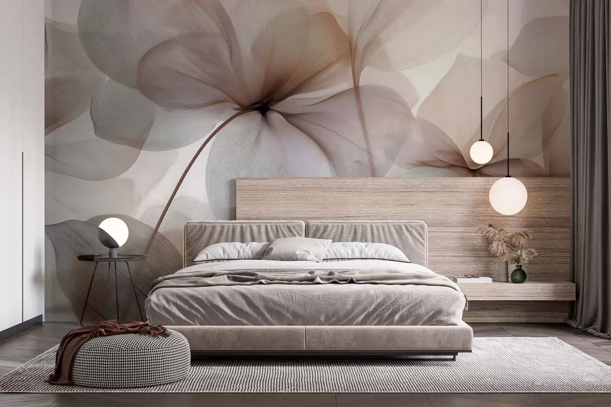 Fototapeedid pooleldi läbipaistvad õied veenidega Nr w05070