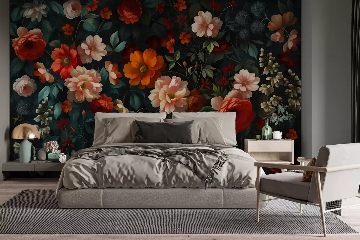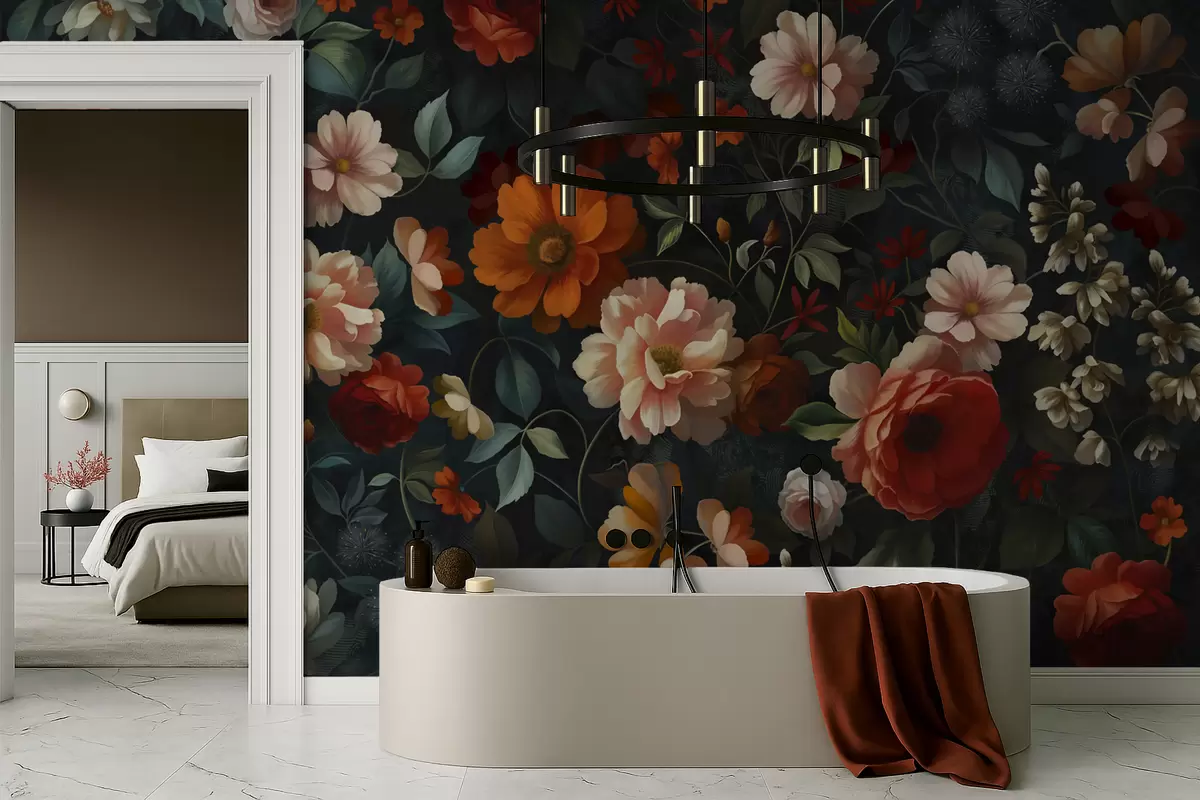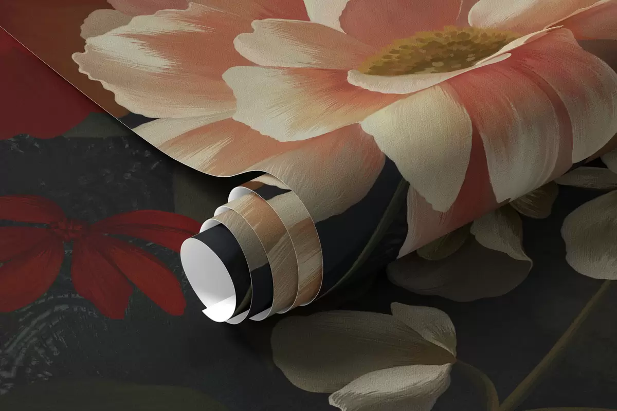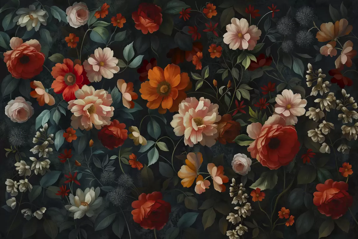 Fototapeedid Tume lillemuster lopsakate aia lilledega Nr w05087