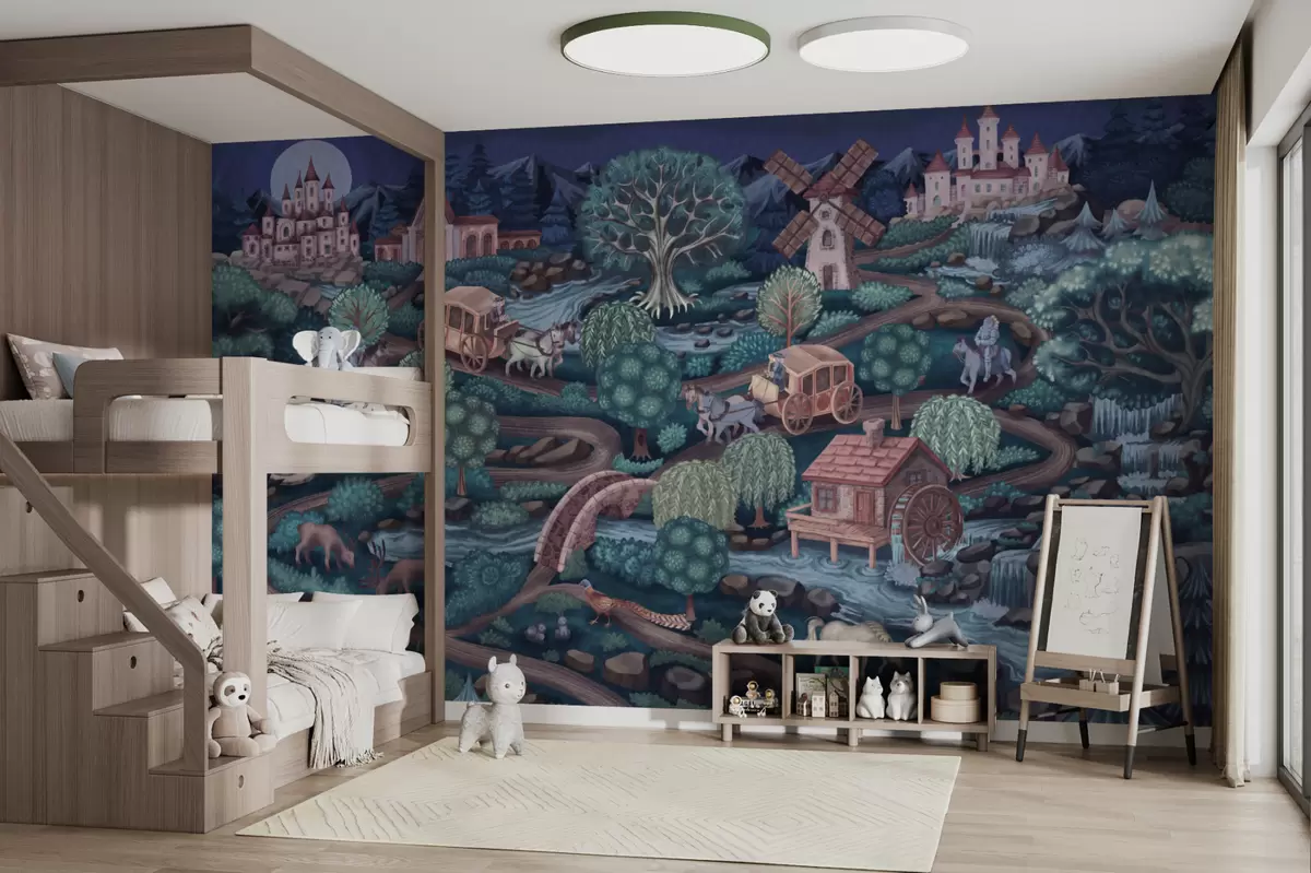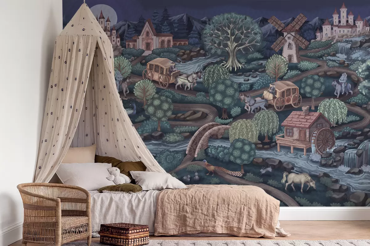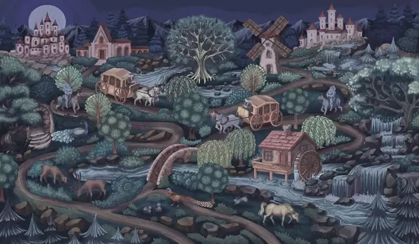 Fototapeedid Öine haldjasstseen lossidega, veskitega ja metsaga Nr w05091
