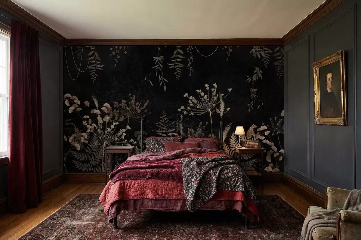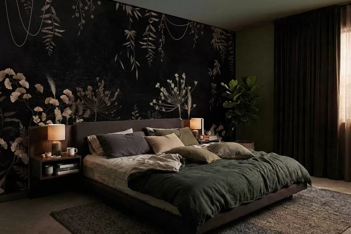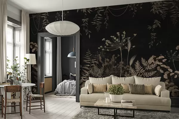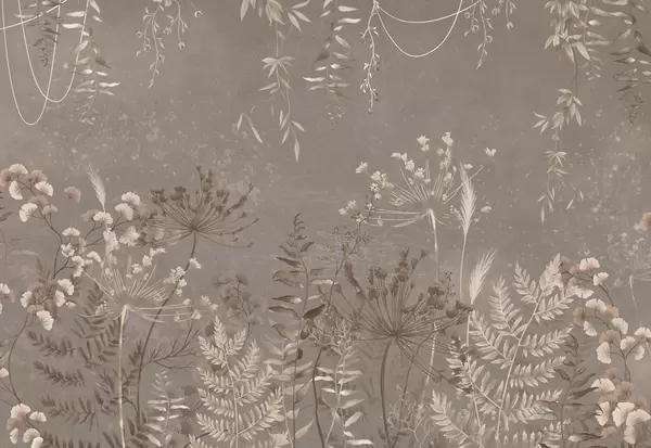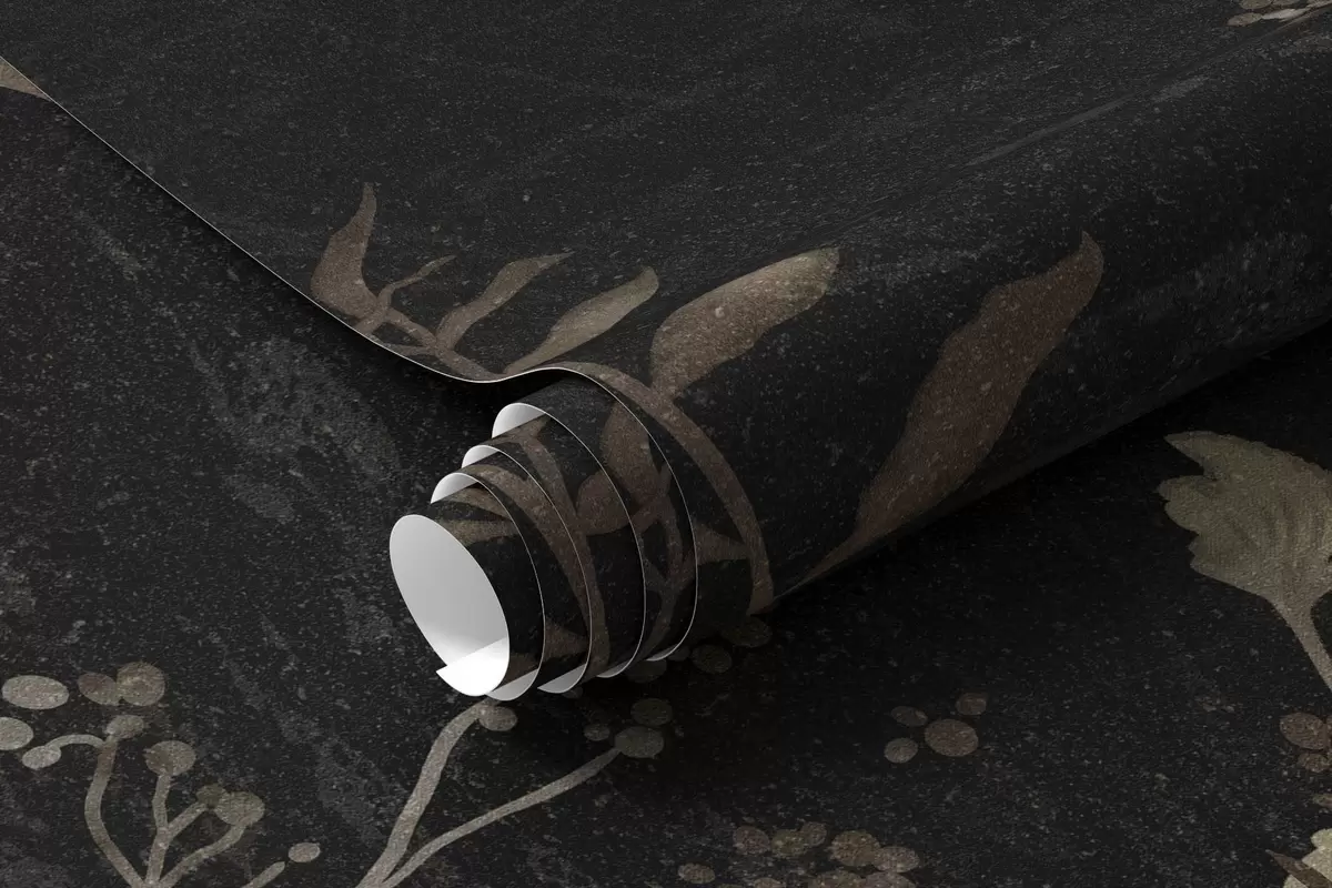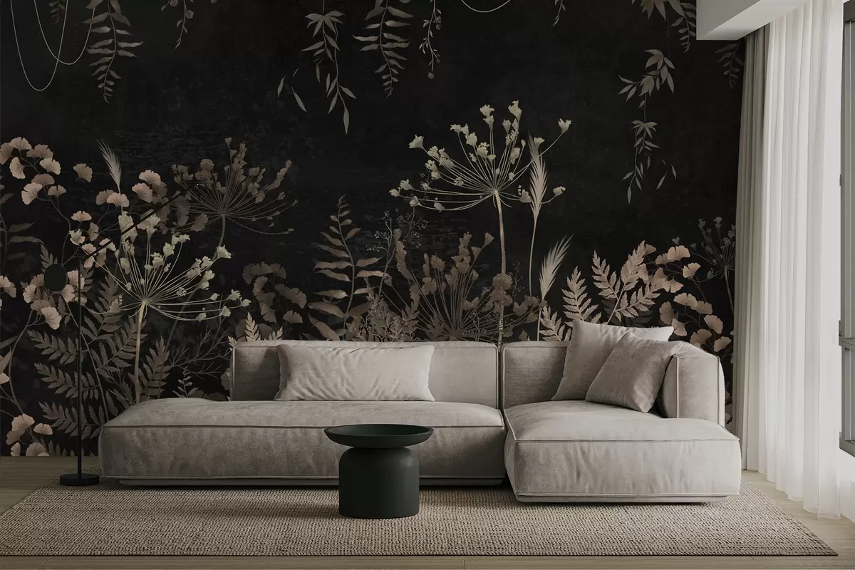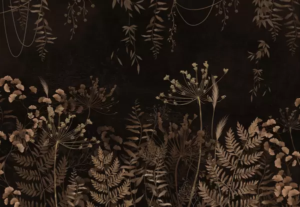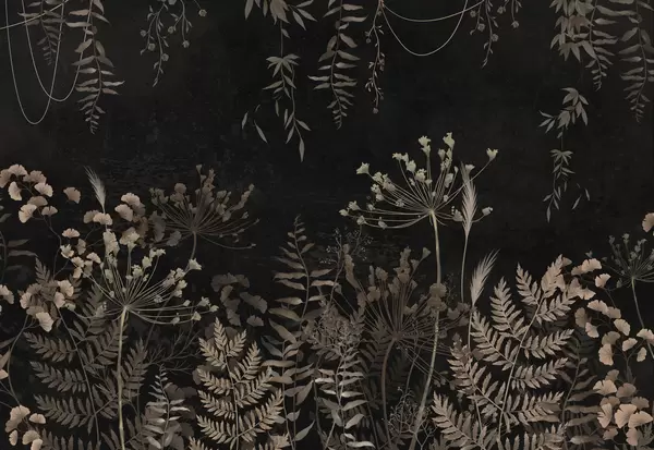 Fototapeedid Tume botaaniline muster lillede ja lehtedega Nr w05092