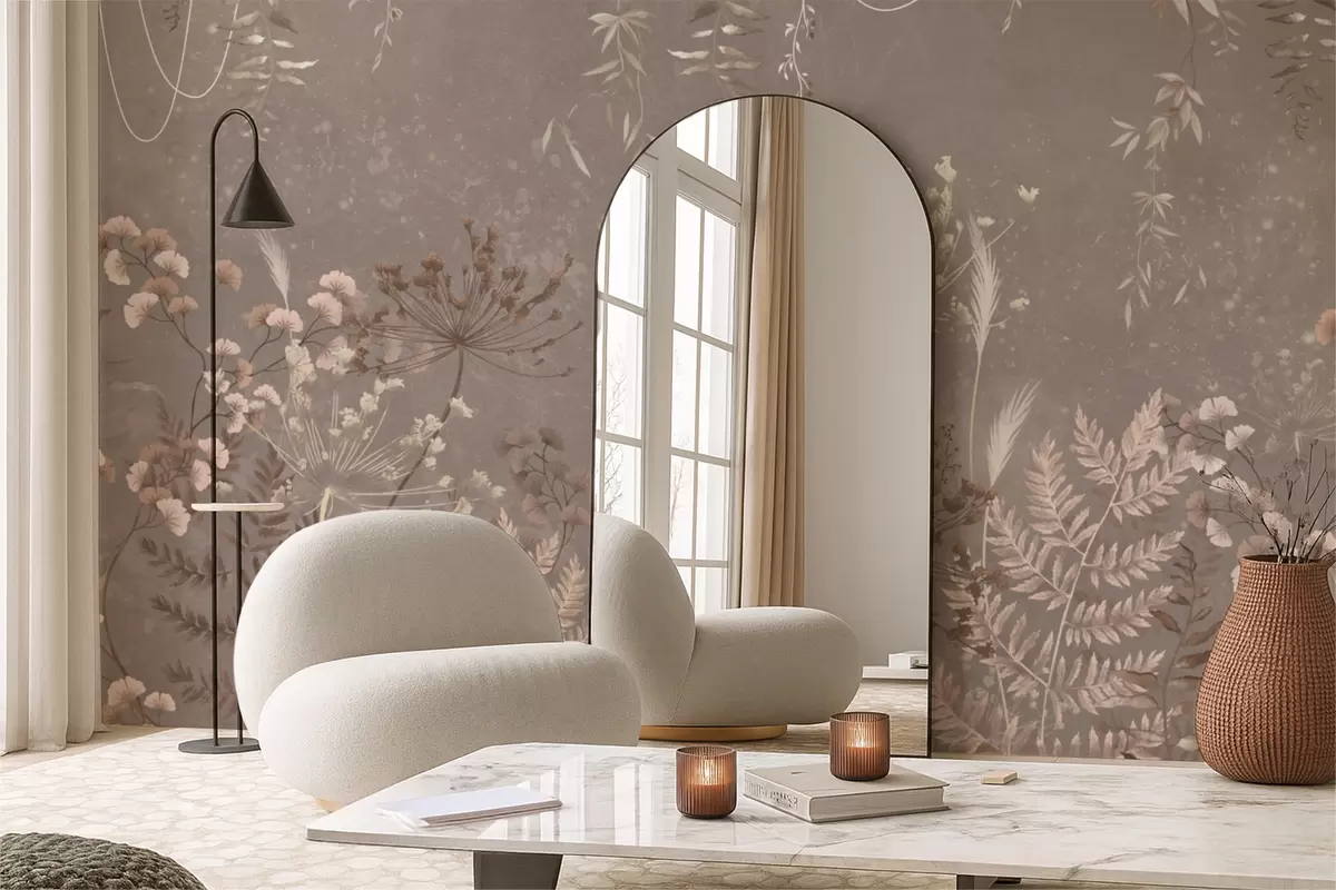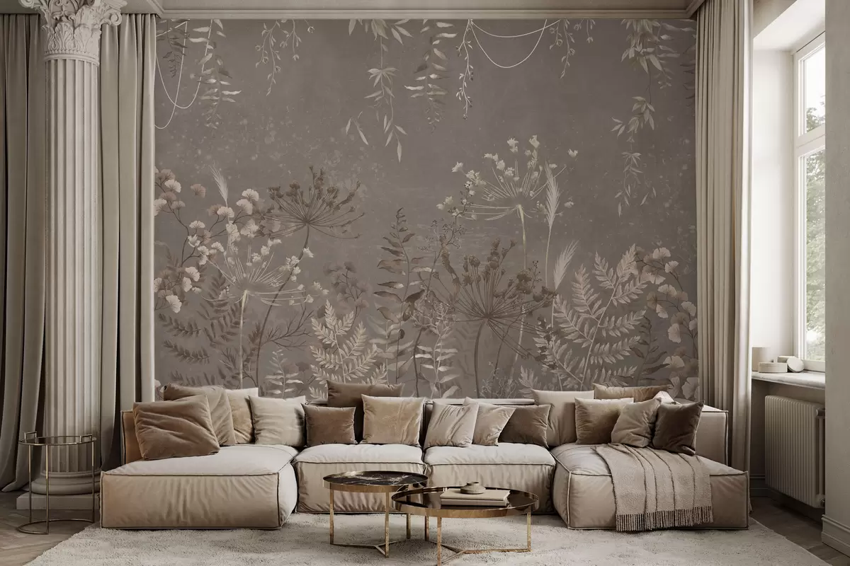 Fototapeedid Kerge botaaniline muster lilledega ja lehtedega Nr w05092v1