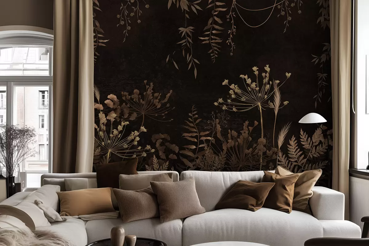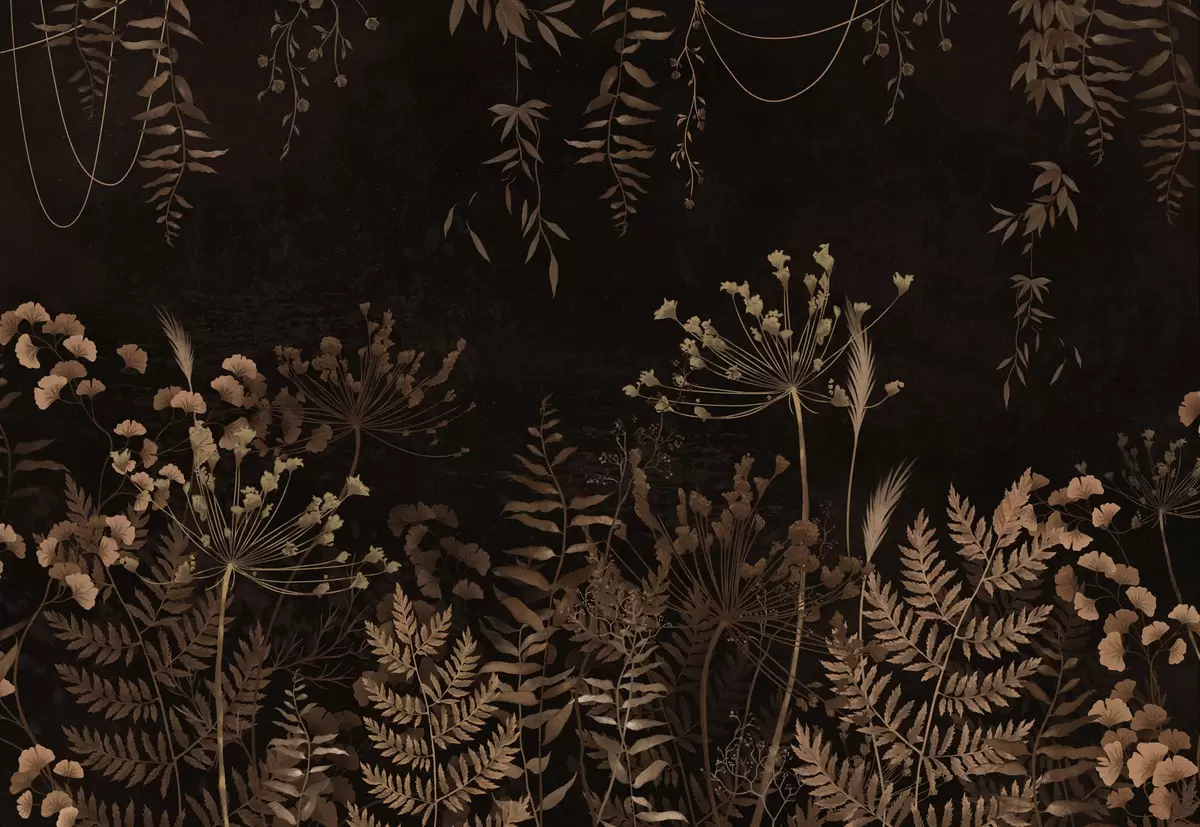Fototapeedid Tume botaaniline muster lillede ja rohtudega Nr w05092v3