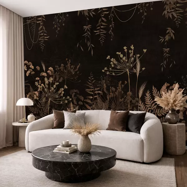 Fototapeedid Tume botaaniline muster lillede ja rohtudega Nr w05092v3
