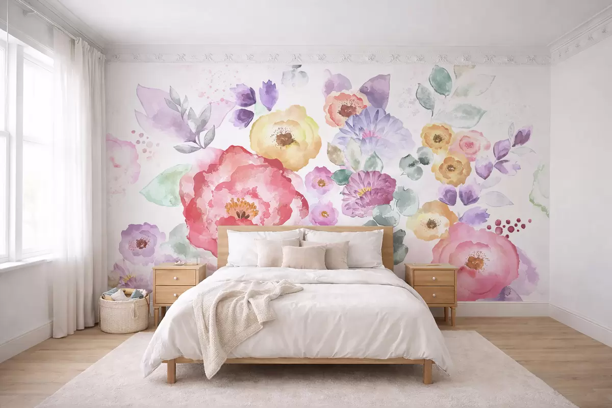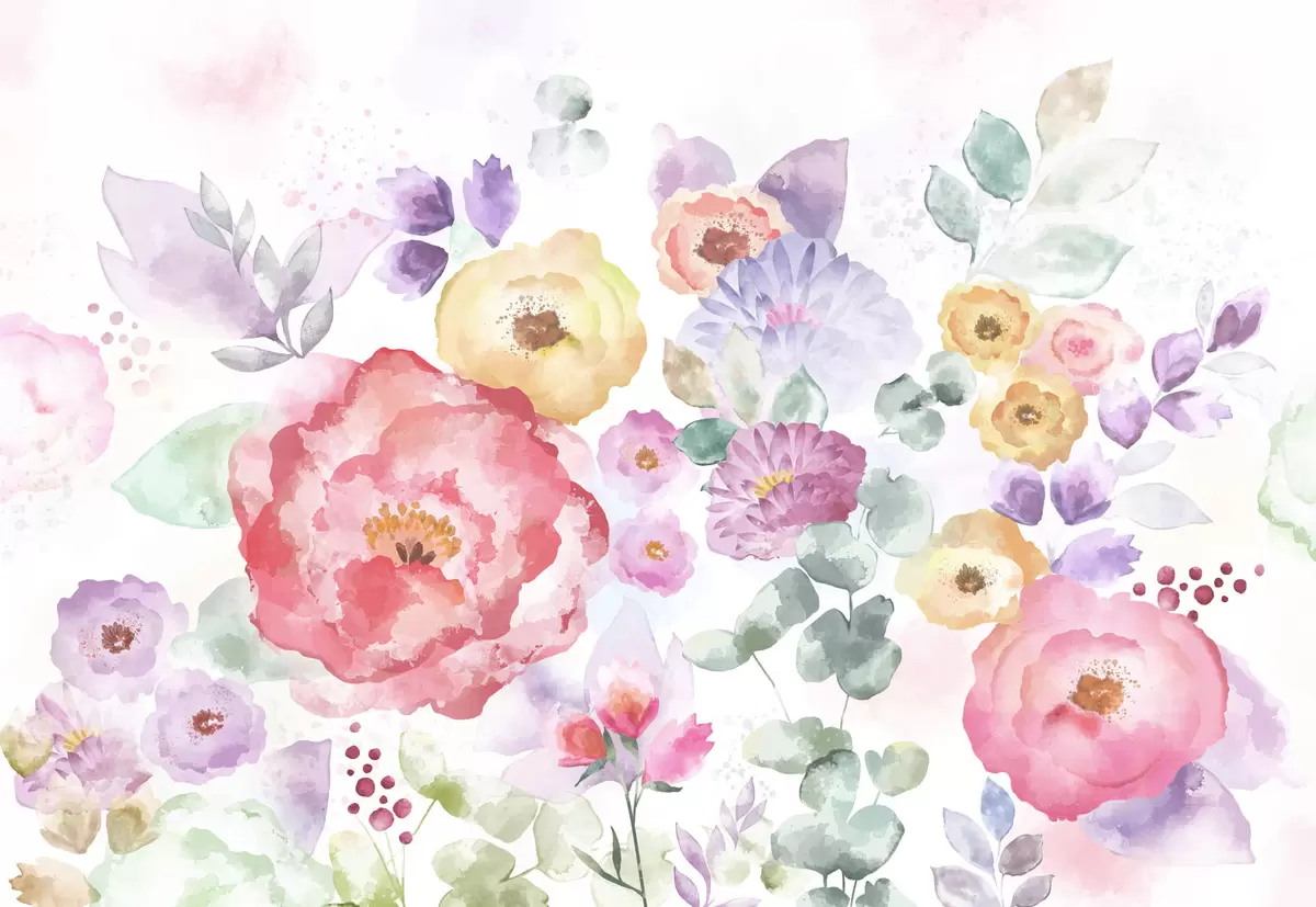 Fototapeedid Pastellakvarellidega maalitud lilled heledal taustal Nr w05093v1
