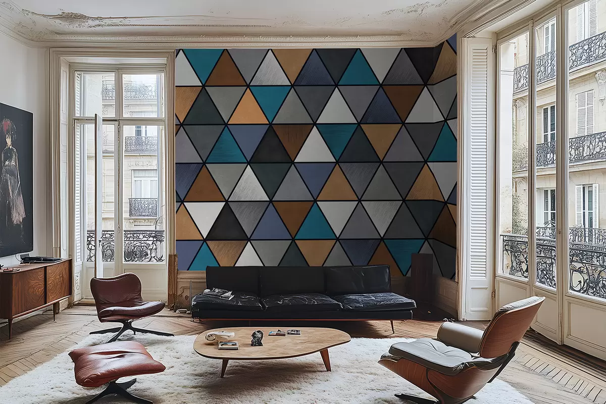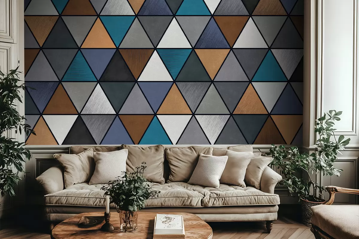 Fototapeedid Sinine ja soojades toonides kolmnurkne geomeetriline muster Nr w05095