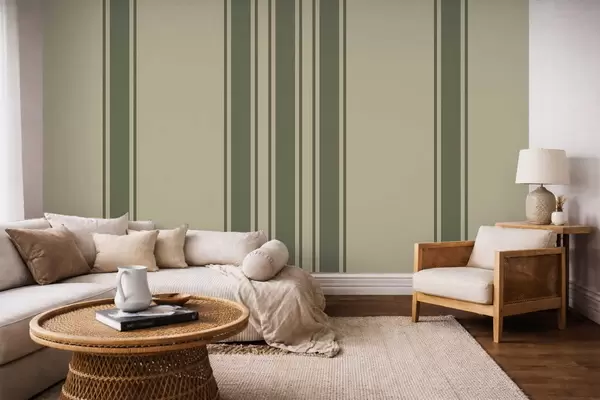Fototapeedid Vertikaalsed triibud vaoshoitud rohelise ja beeži värvipalettis Nr w05098
