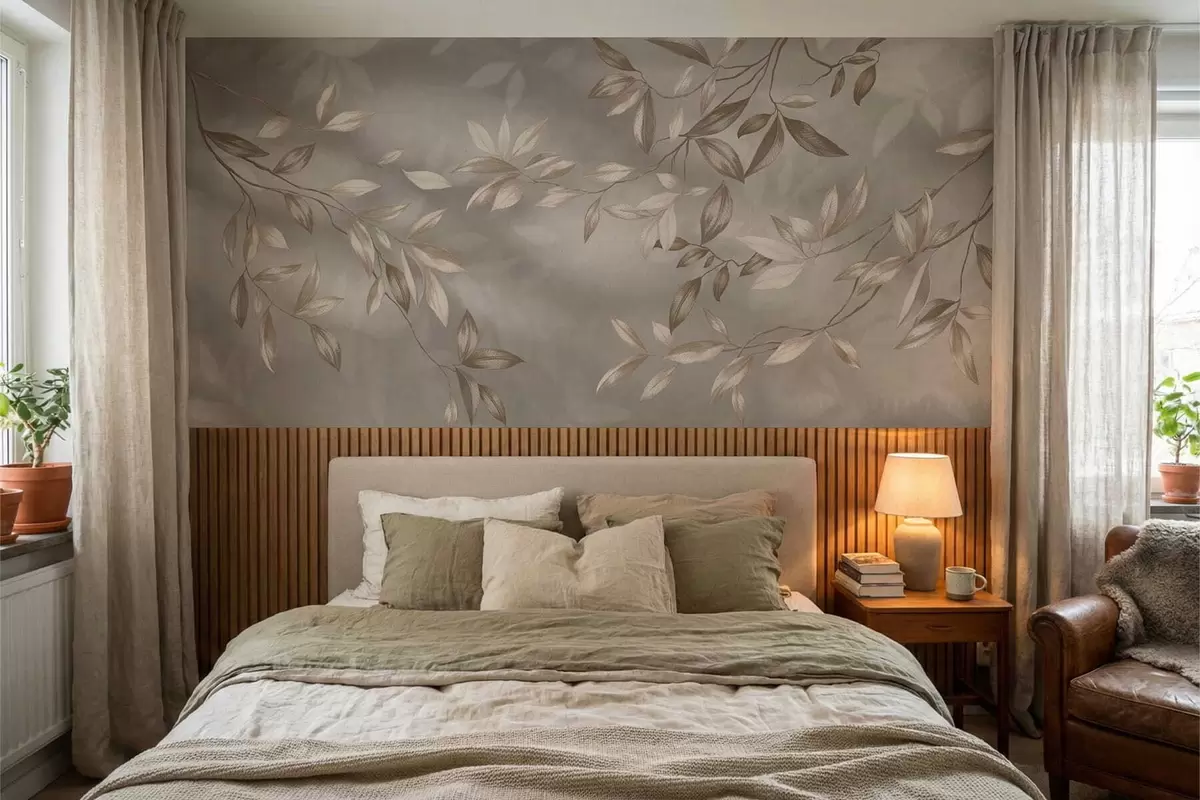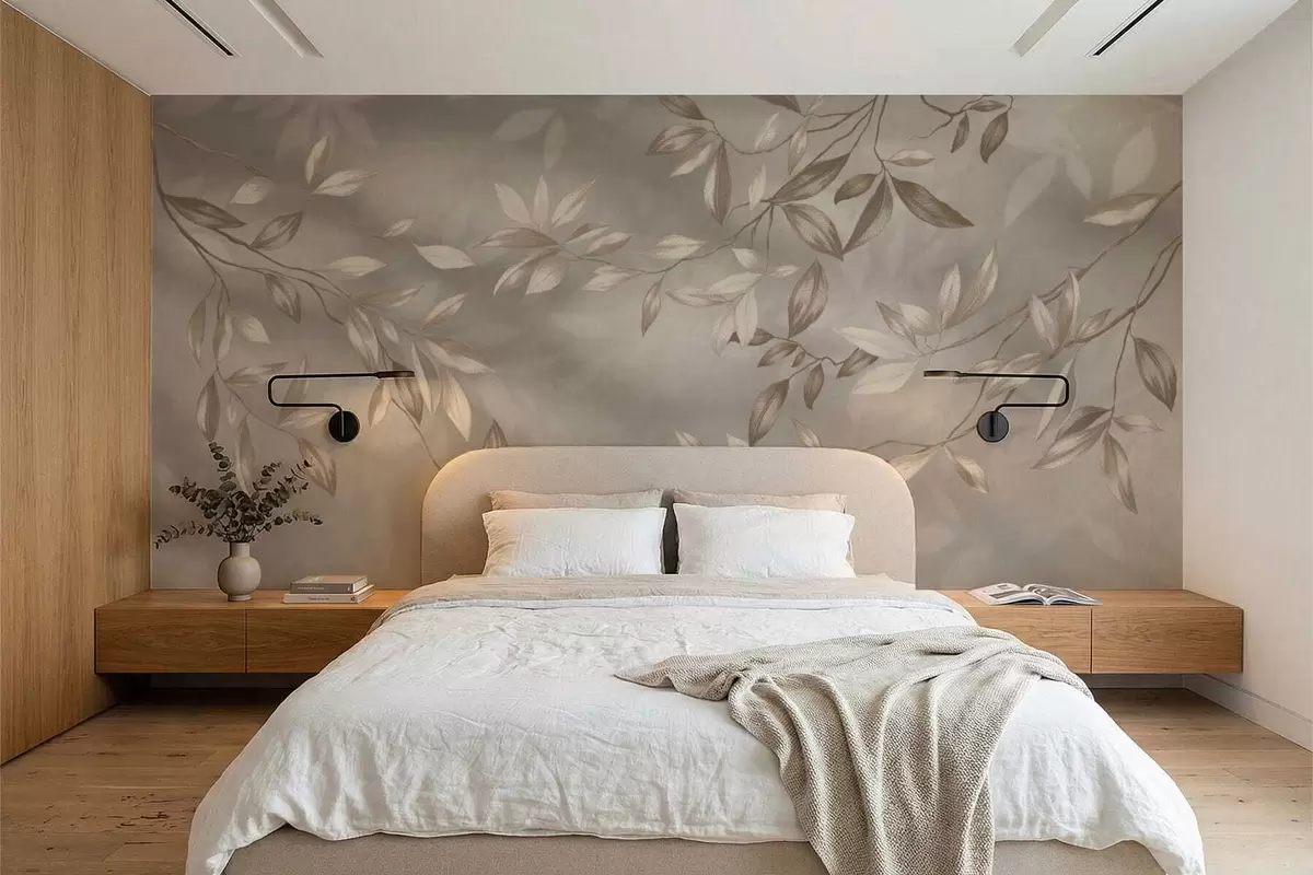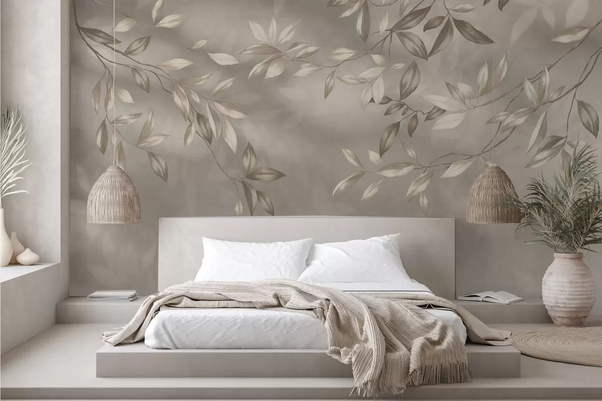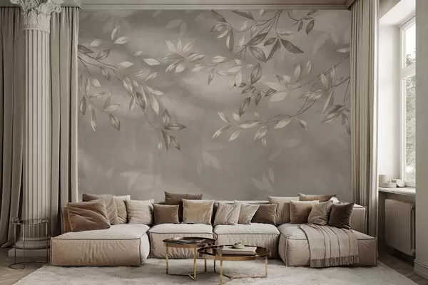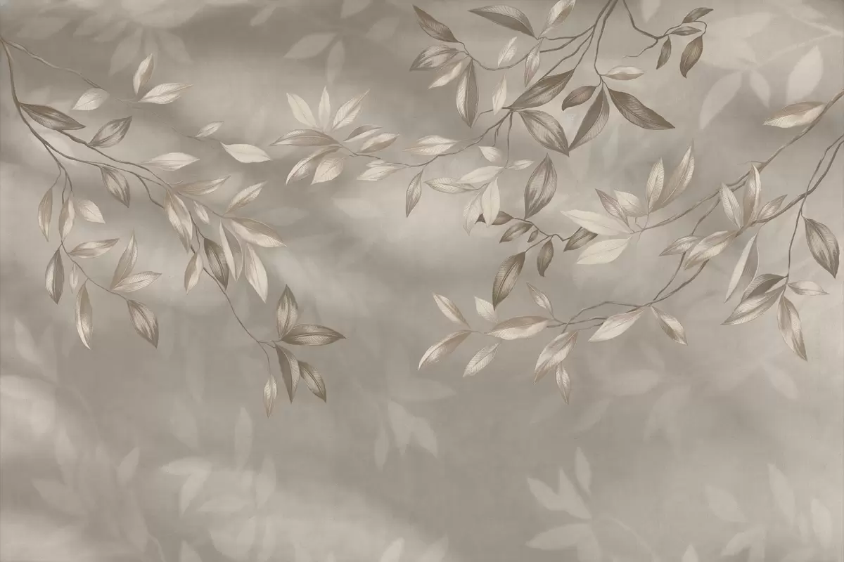 Fototapeedid Elegantsed lehtedega oksad beežides toonides heledal taustal Nr w05113