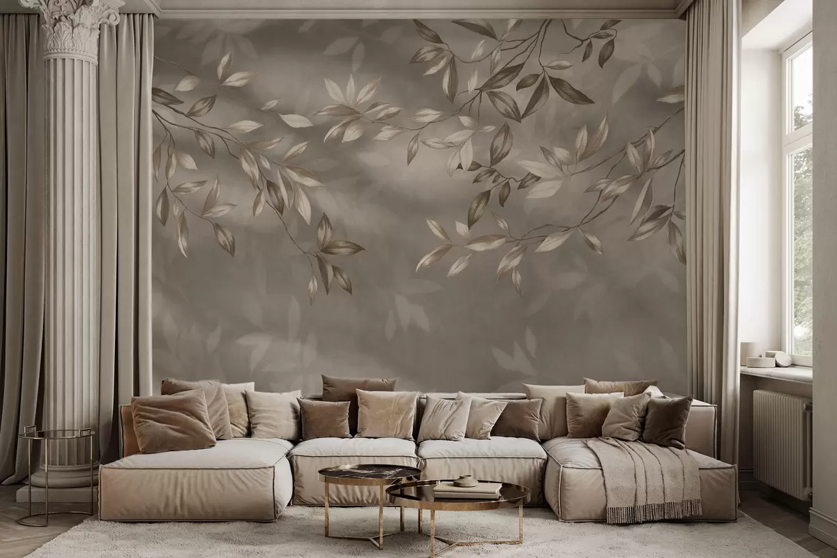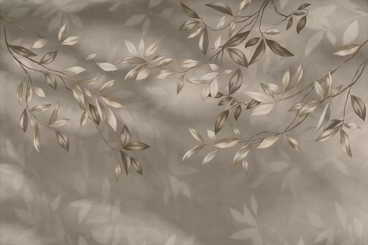 Fototapeedid Õrnad lehtedega oksad beežides toonides heledal taustal Nr w05113v2
