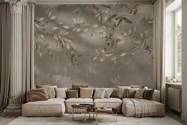 Fototapeedid Õrnad lehtedega oksad beežides toonides heledal taustal Nr w05113v2