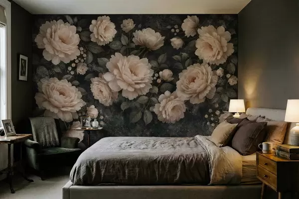 Fototapeedid Mahukad lilled beežides toonides tumedal taustal Nr w05114