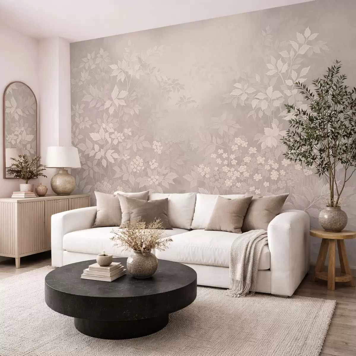 Fototapeedid Kerge botaaniline ornament lehtede ja väikeste lilledega Nr w05115