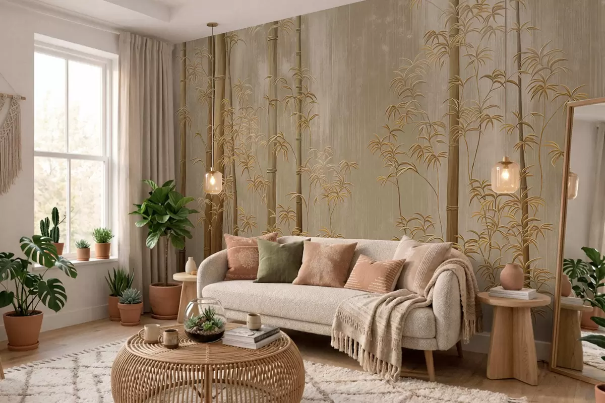 Fototapeedid Beež bambus õhukeste vartega Nr w05120v2