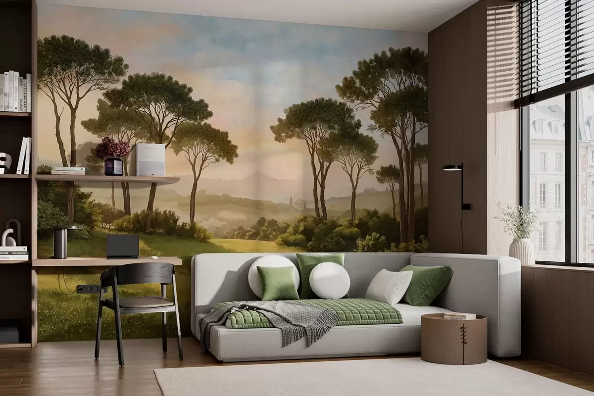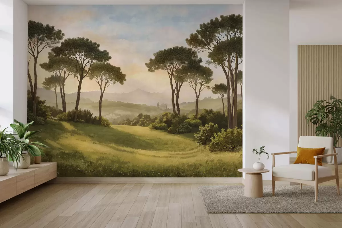 Fototapeedid Maastik puudega soojas päikeseloojangus Nr w05122