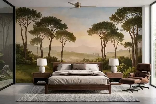 Fototapeedid Maastik puudega soojas päikeseloojangus Nr w05122