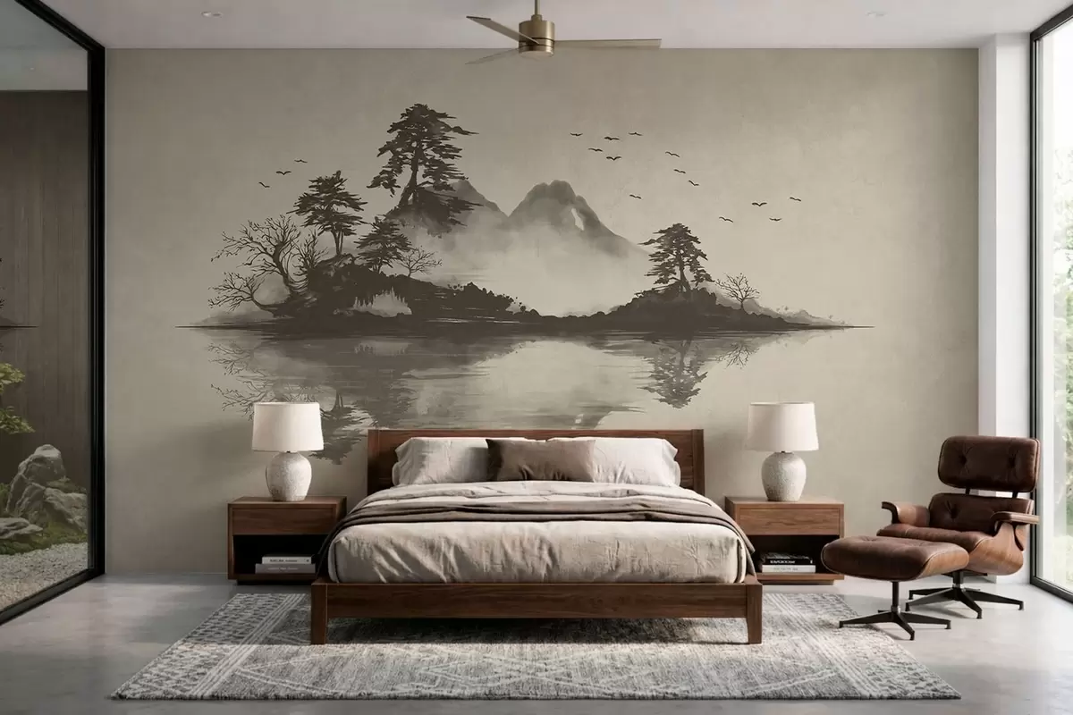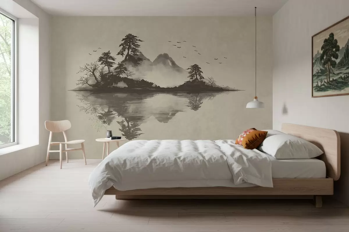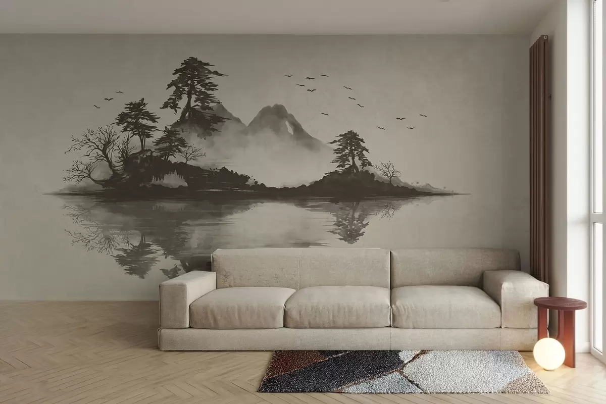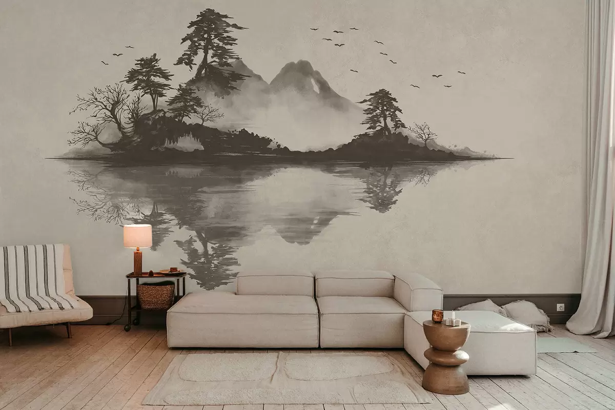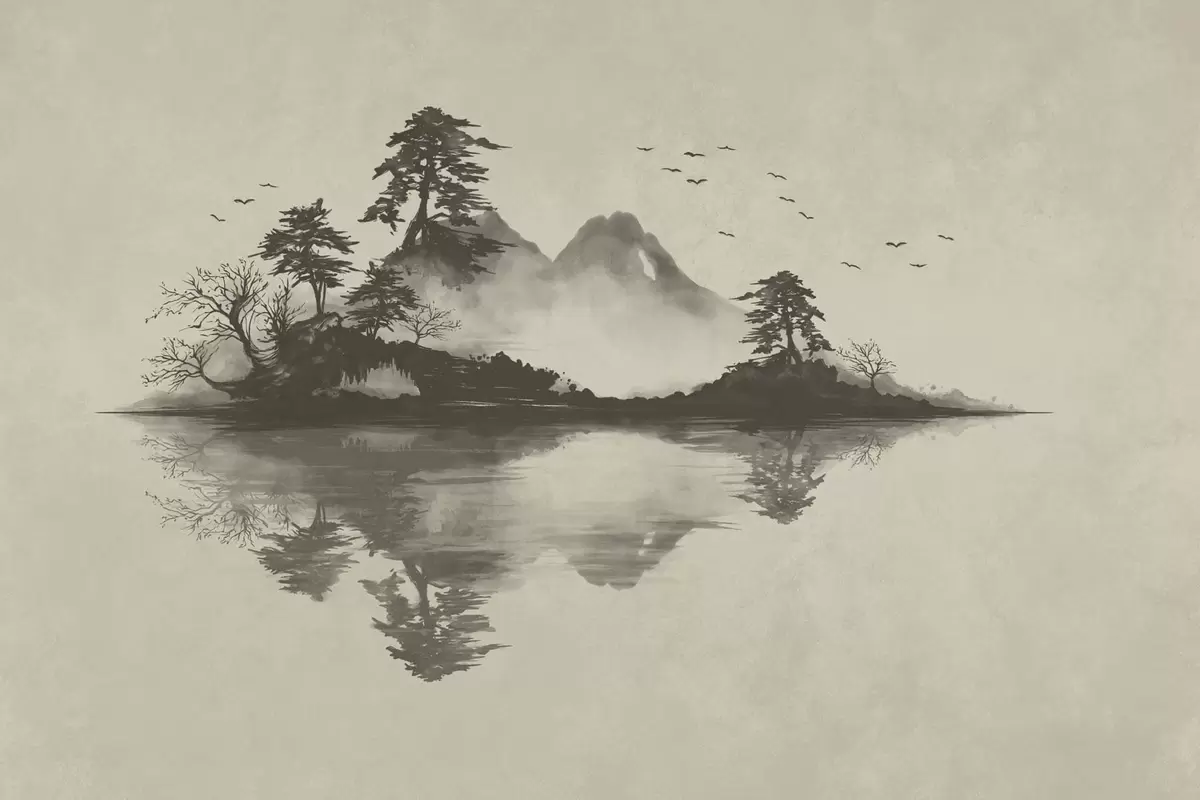 Fototapeedid Sumi-e mägimaastik pehmetes hallides toonides Nr w05124v1