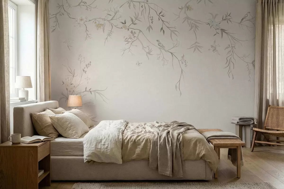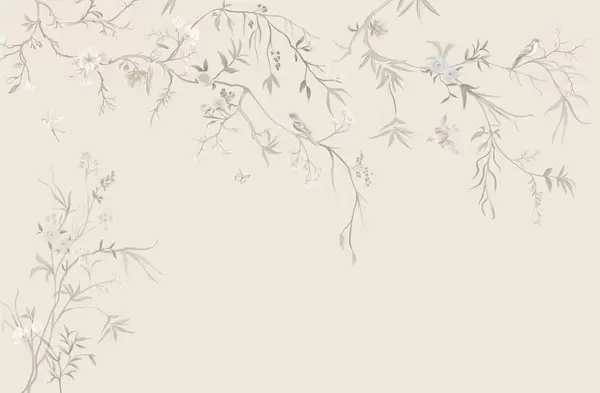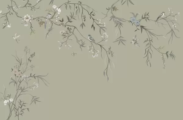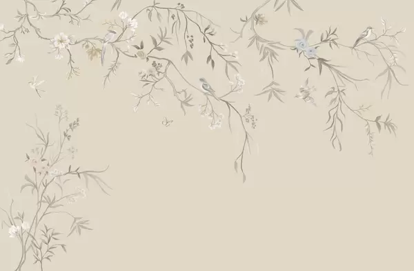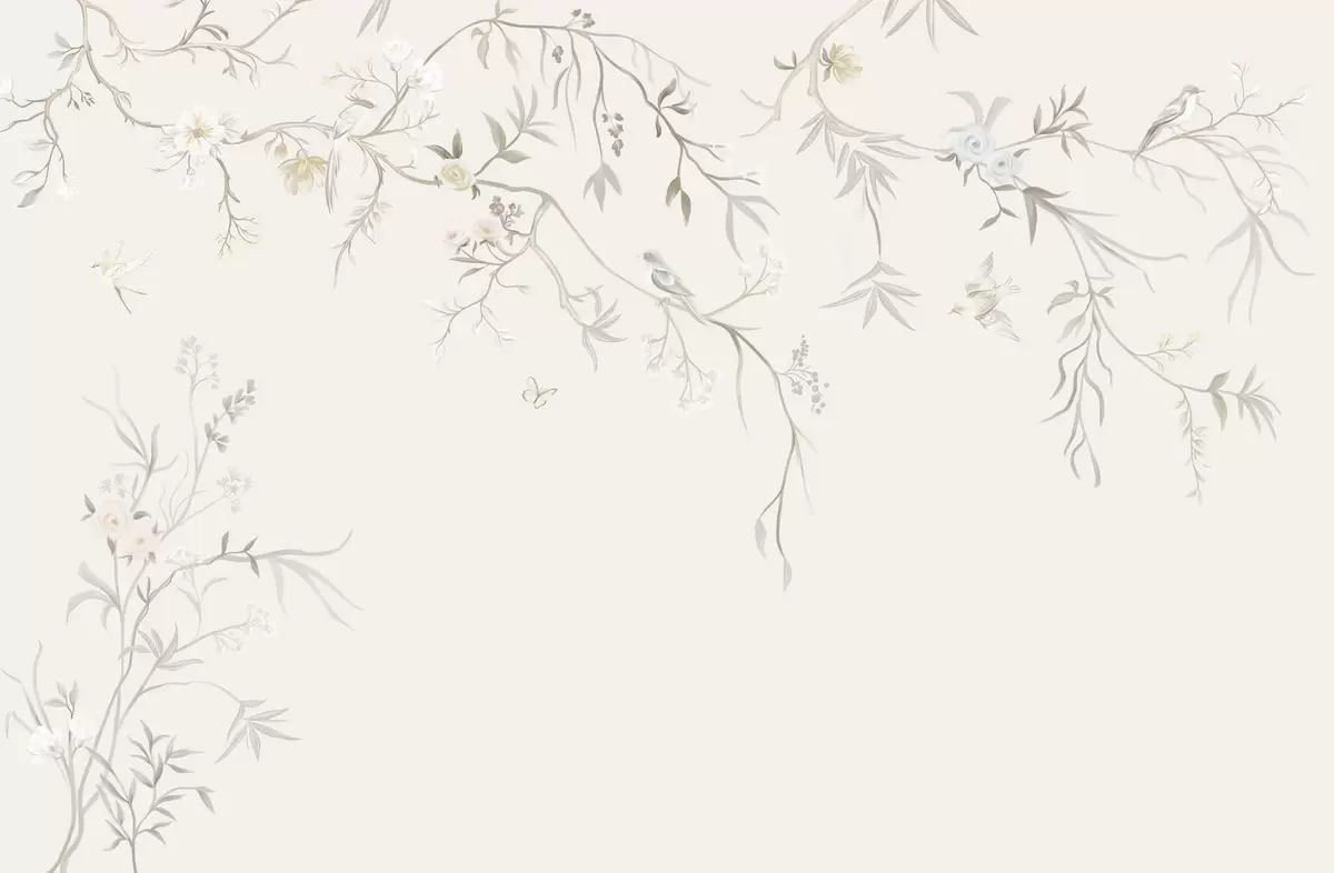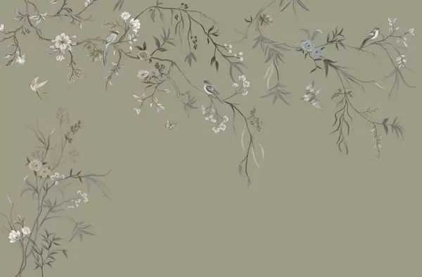 Fototapeedid Õrnad lilled ja linnud kriiditaustal Nr w05127