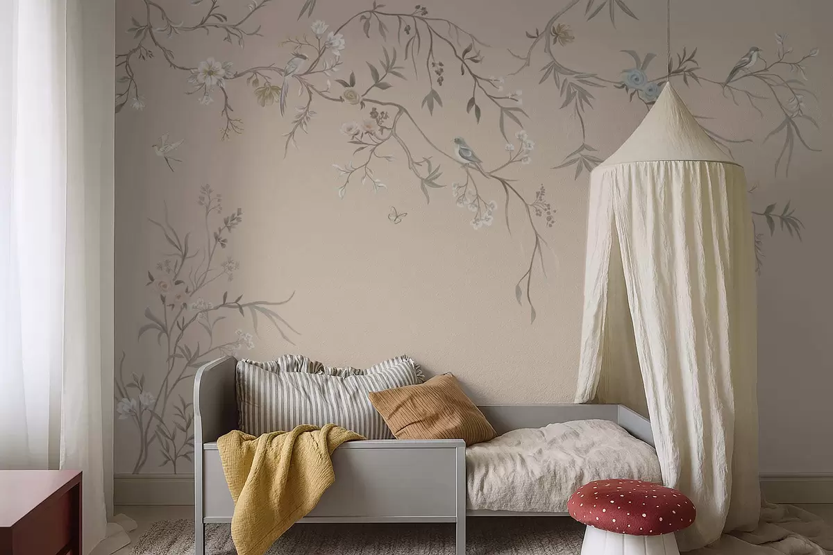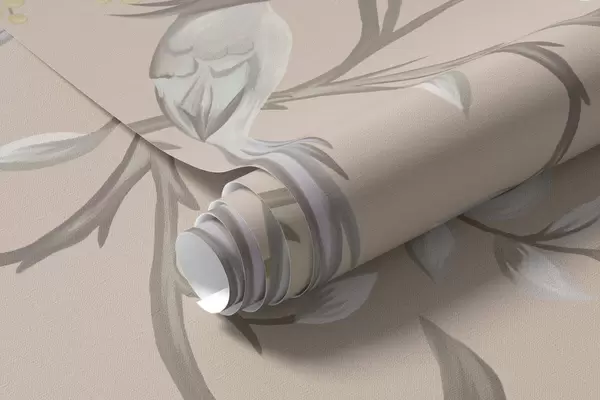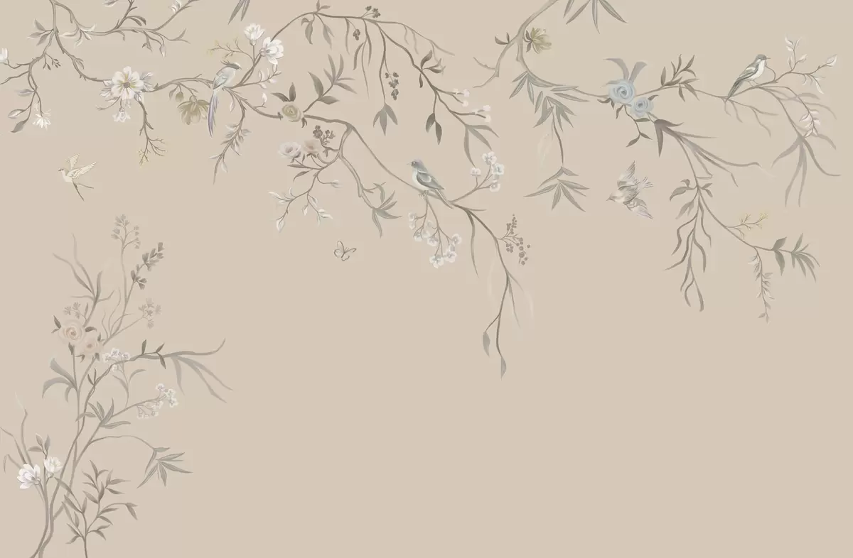 Fototapeedid Lillede oksad lindudega soojal beežil taustal Nr w05127v1