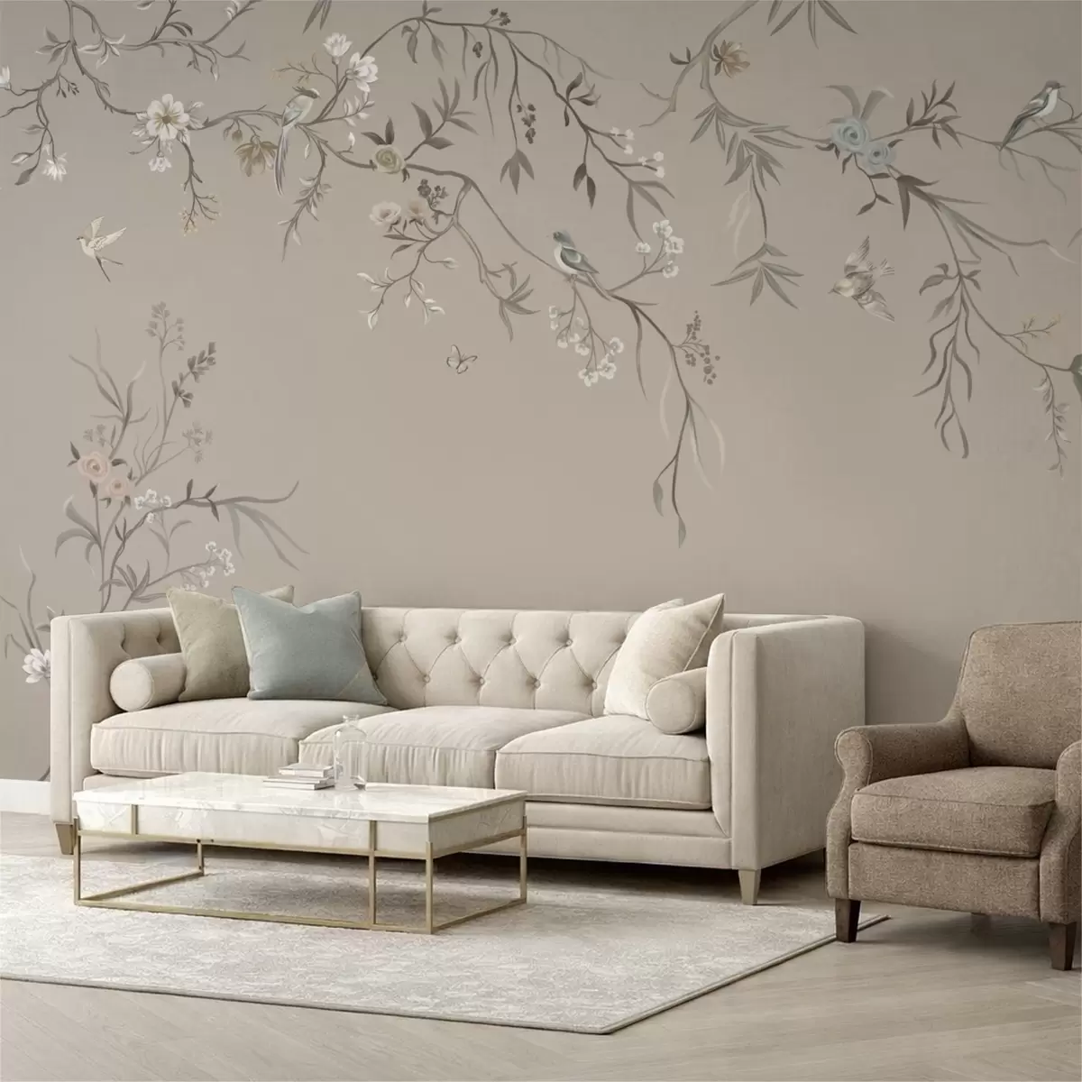 Fototapeedid Lilleline ornament lindudega neutraalsel taustal Nr w05127v3