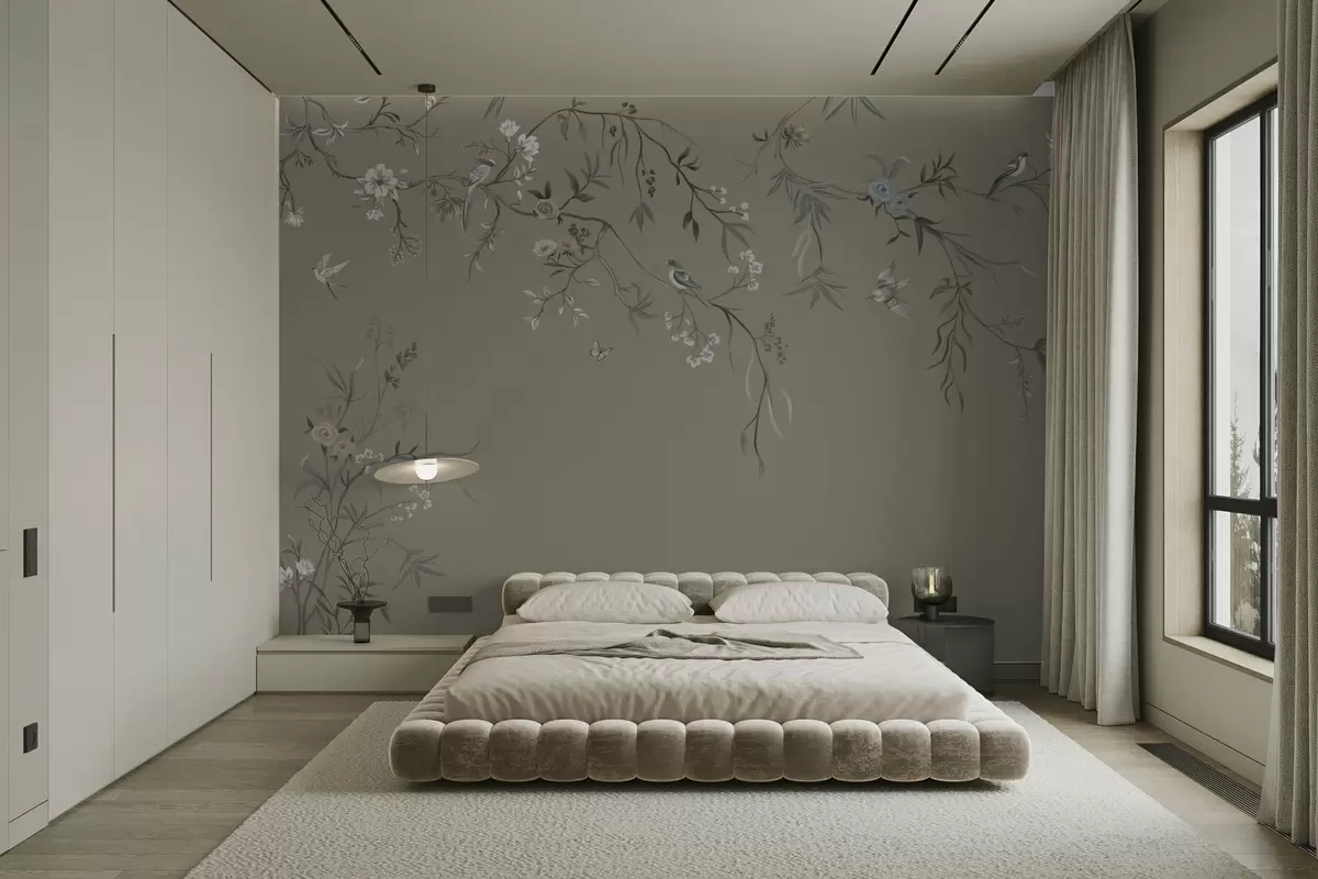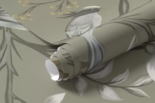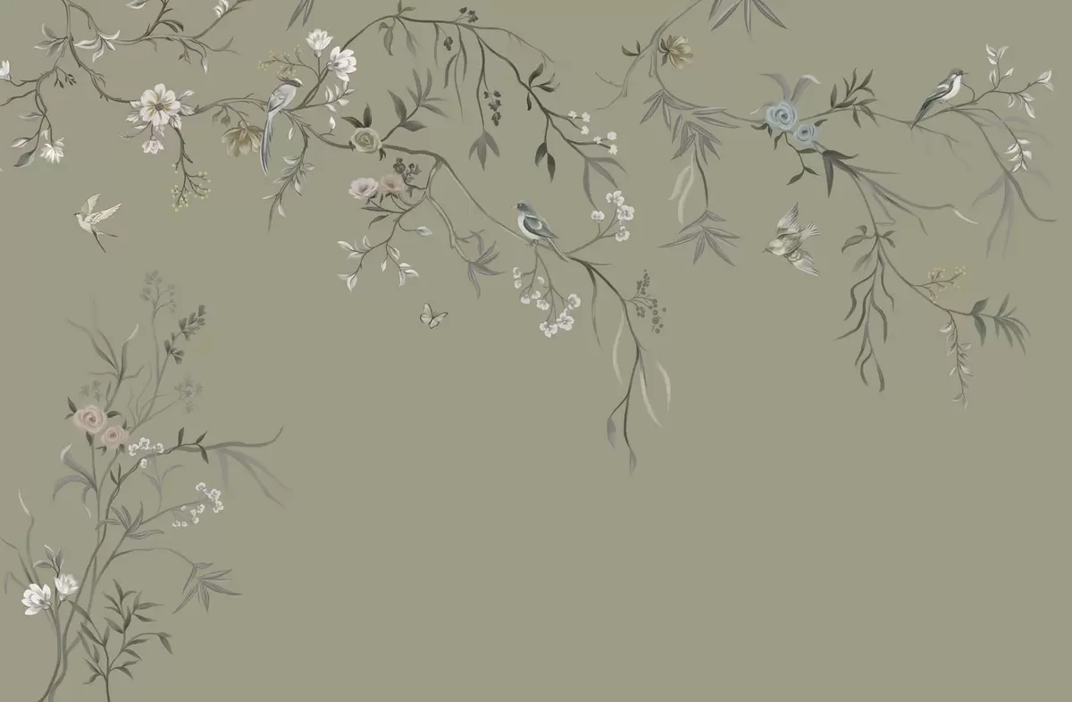 Fototapeedid Lilleline motiiv lindudega hallil taustal Nr w05127v4