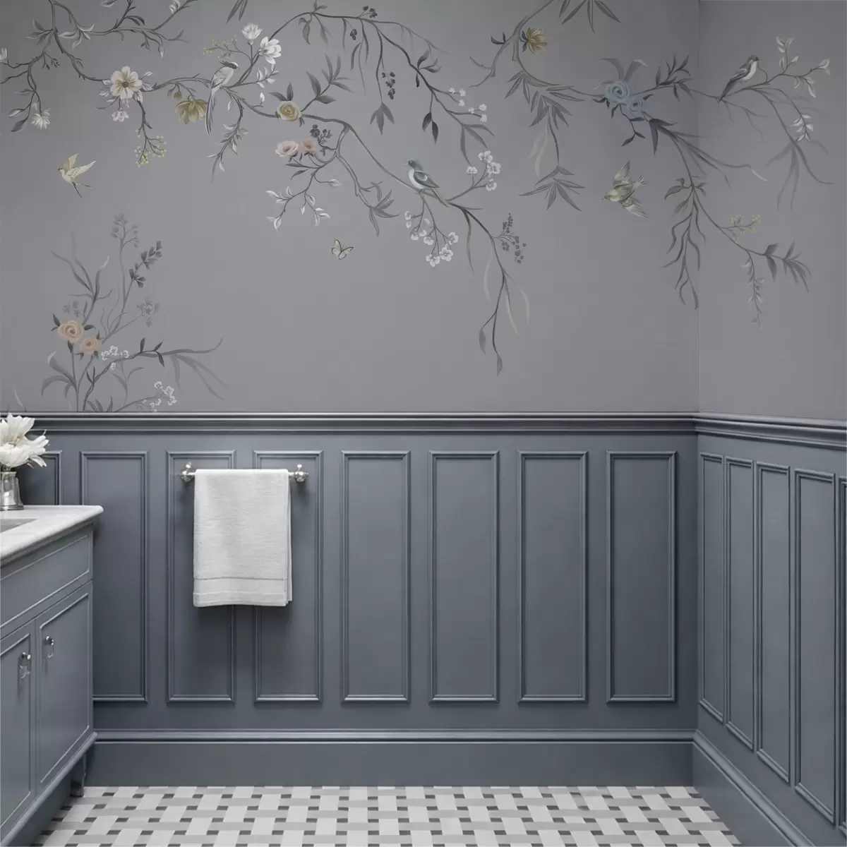 Fototapeedid Lillelised oksad lindudega rohelisel taustal Nr w05127v5