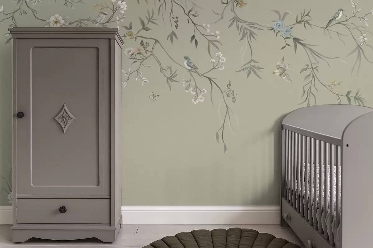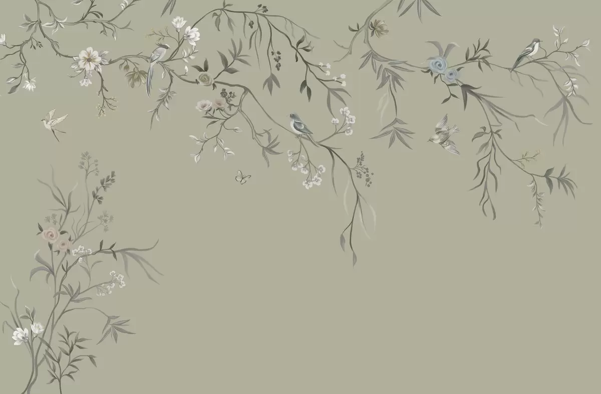 Fototapeedid Lilleline muster lindudega jahedal taustal Nr w05127v6