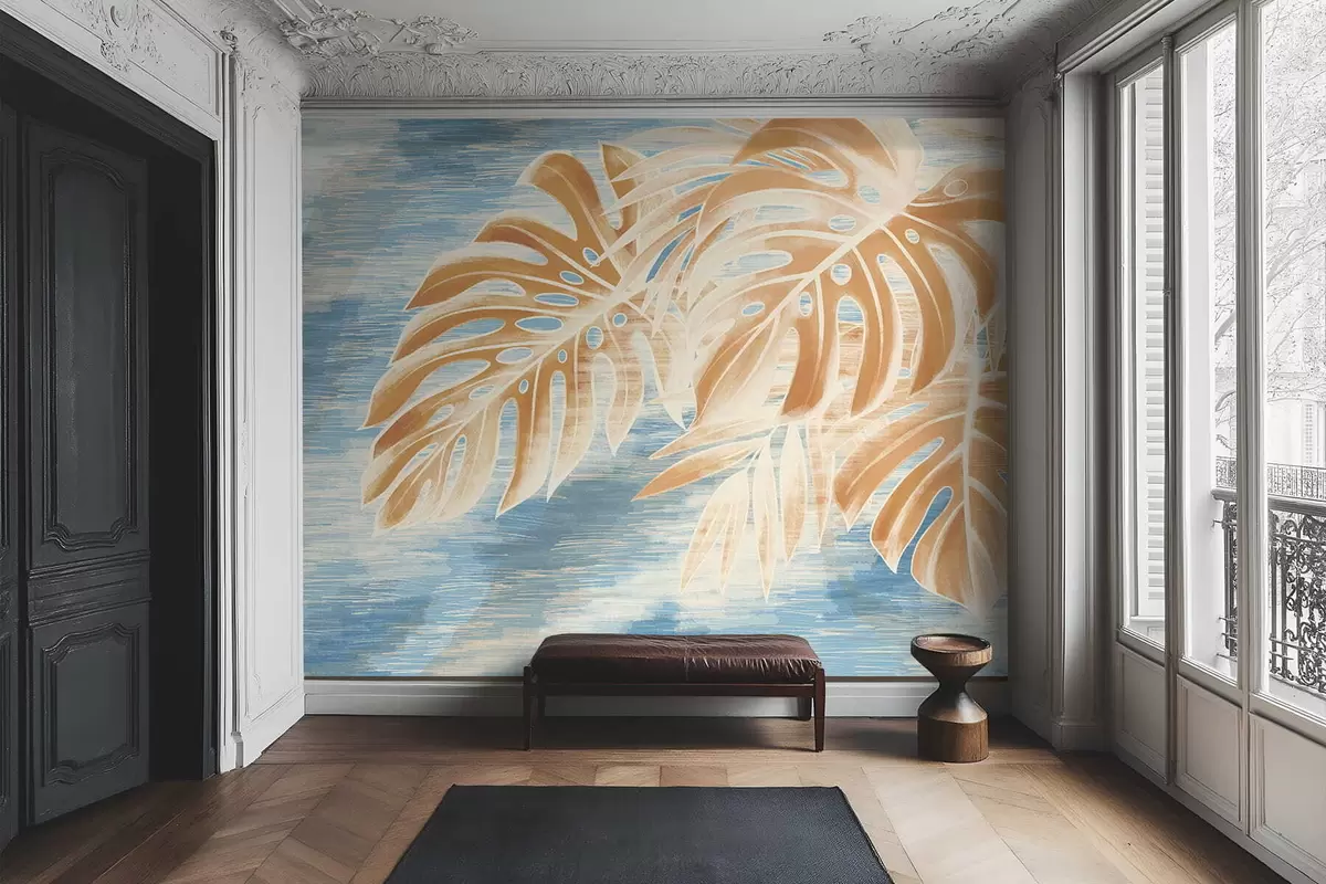 Fototapeedid Lehed heledates liivatoonides sinisel taustal Nr w05130v1