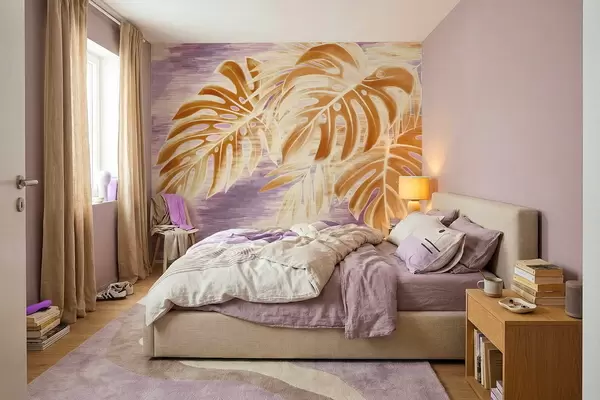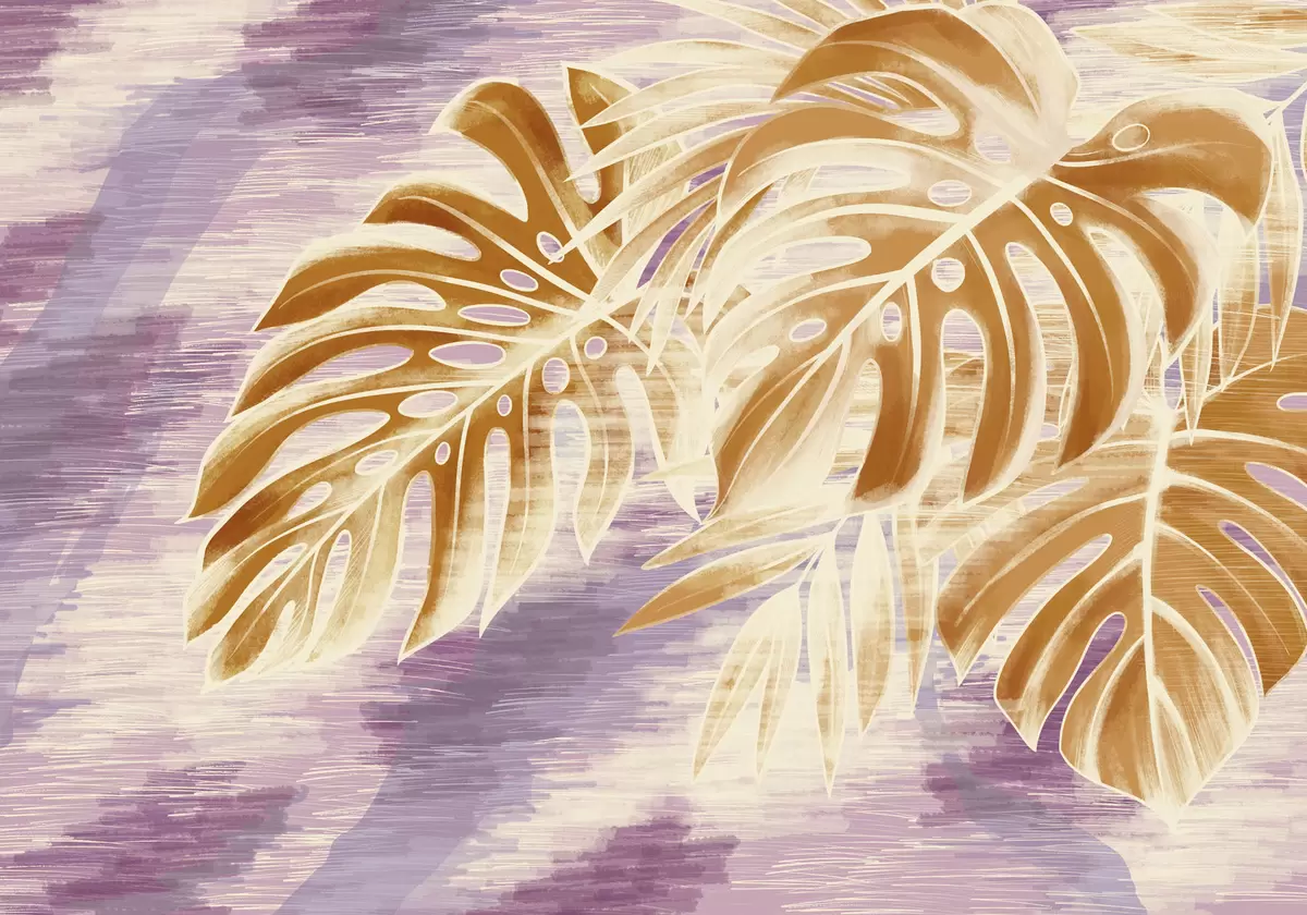 Fototapeedid Lehed soojades oranžides toonides lilla taustal Nr w05130v2