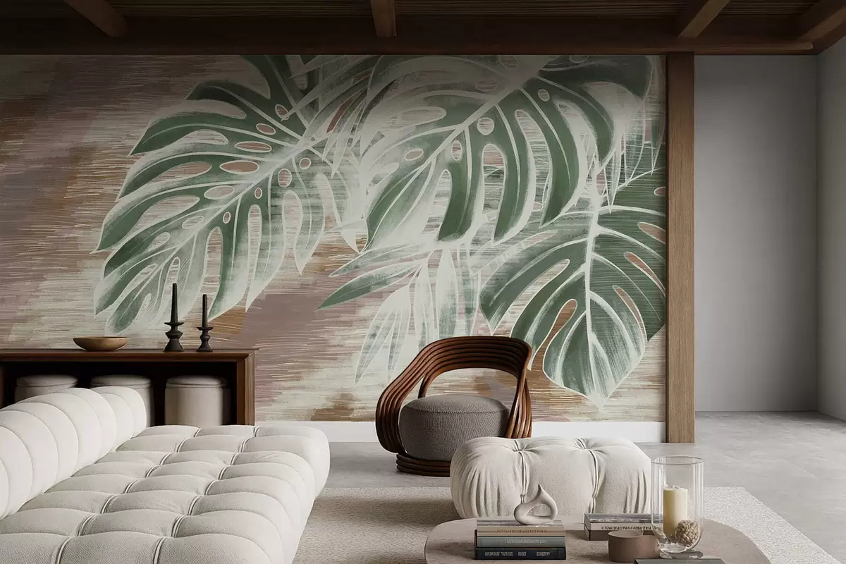 Fototapeedid Rohelised lehed soojal tekstuuriga abstraktsel alusel Nr w05130v3
