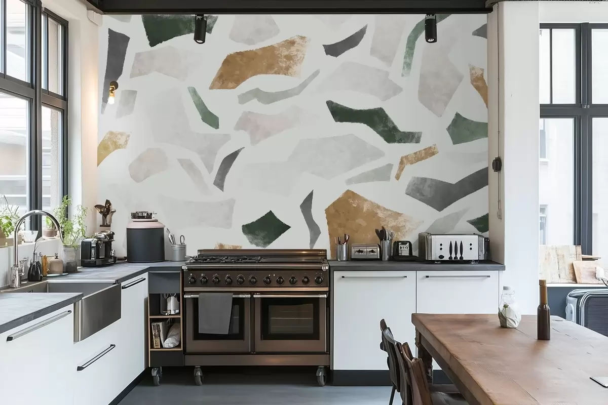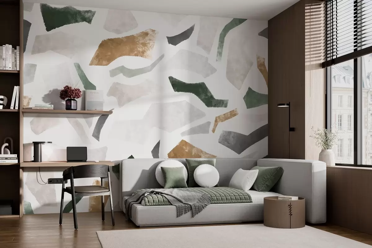 Fototapeedid Abstraktsed tekstuuriga fragmentid rohelistes ja beežides toonides Nr w05146
