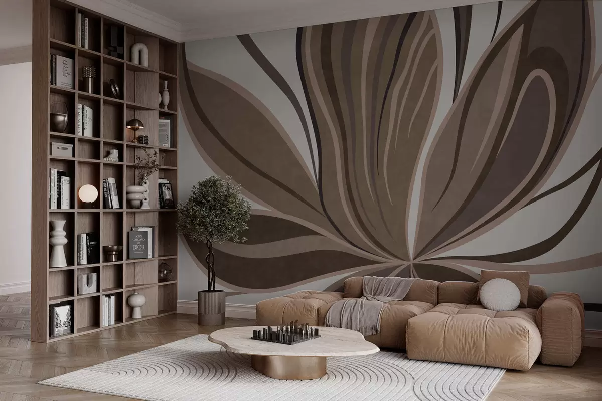 Fototapeedid Stiliseeritud lill voolavate joontega pruunides toonides Nr w05147