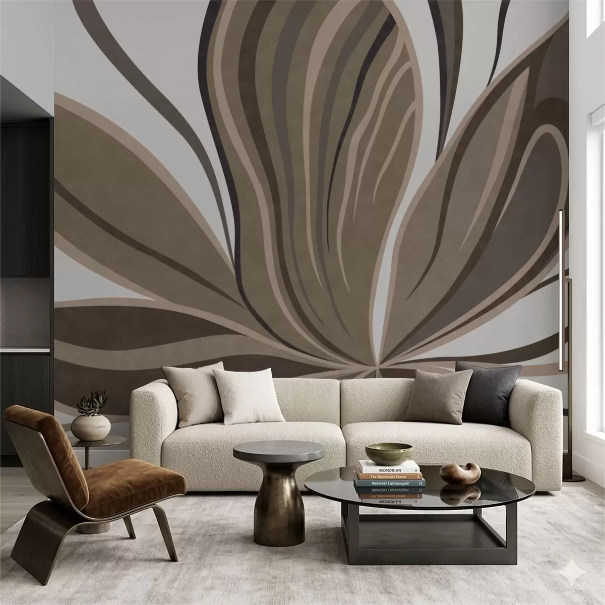 Fototapeedid Stiliseeritud lill voolavate joontega pruunides toonides Nr w05147