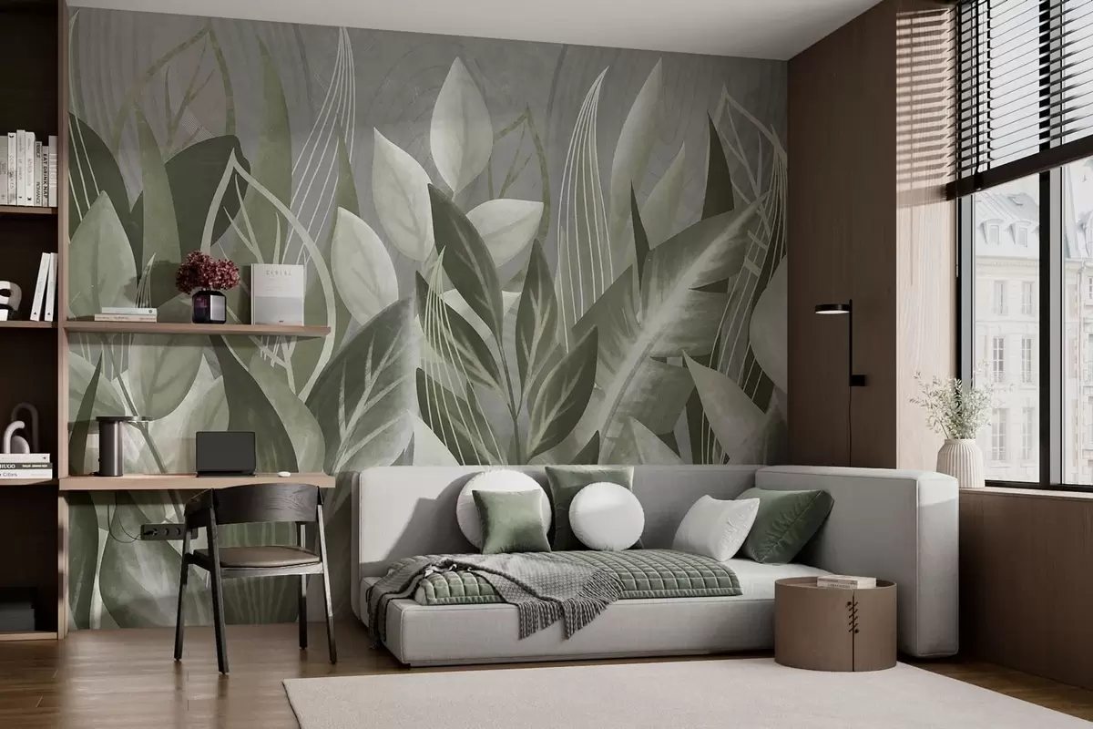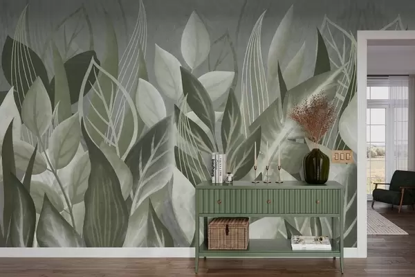 Fototapeedid Halli-rohelistes toonides abstraktsed lehed Nr w05148v1