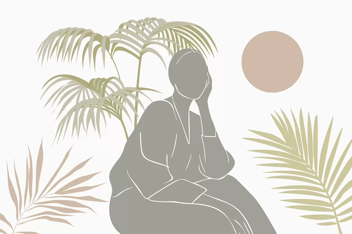 Fototapeedid Naise siluett ja palmilehed Nr w05190
