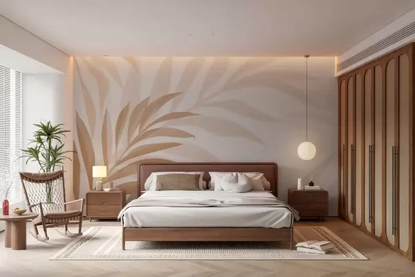 Fototapeedid suured kõverad palmilehed beeži ja pruuni toonides Nr w05211