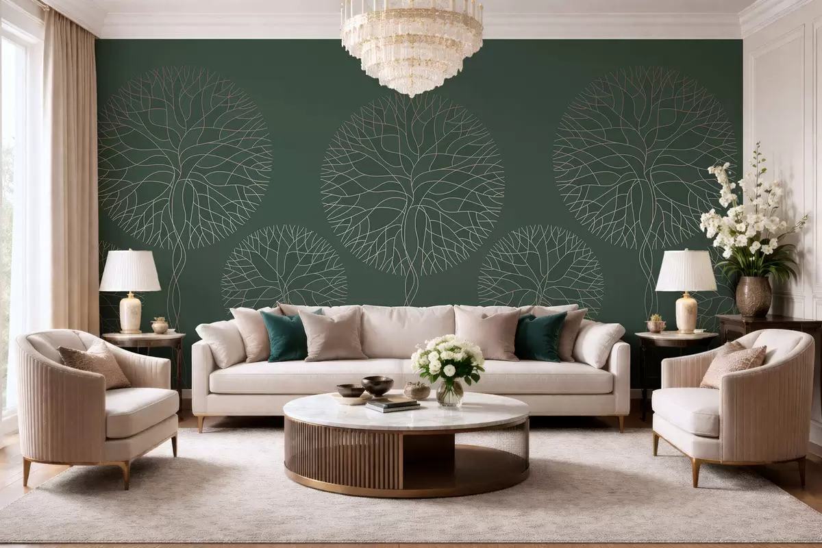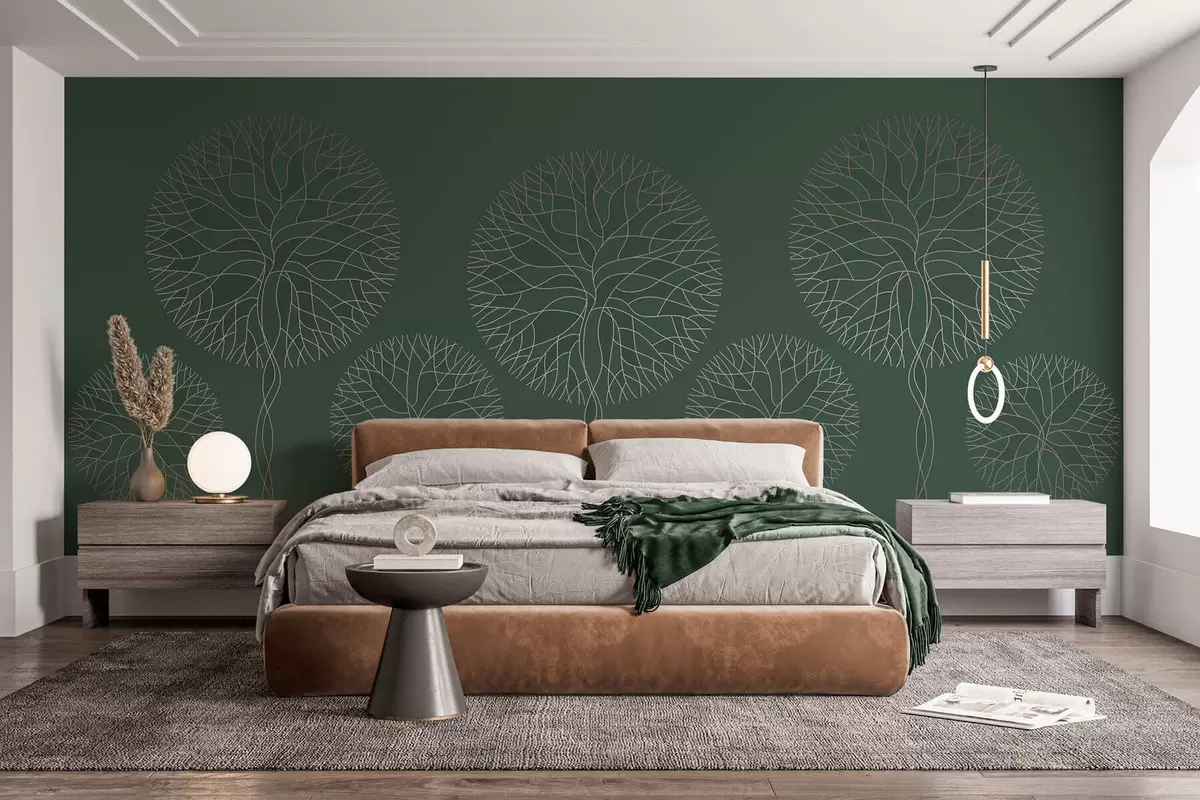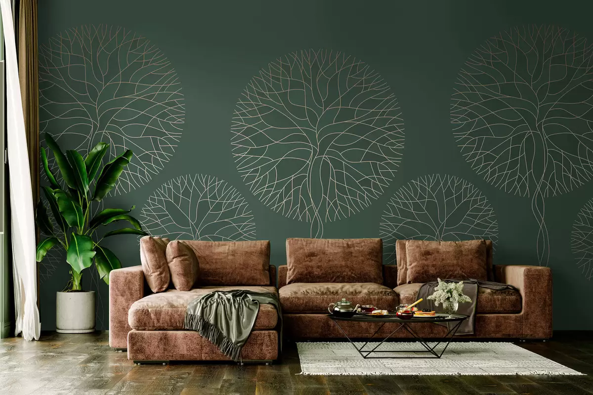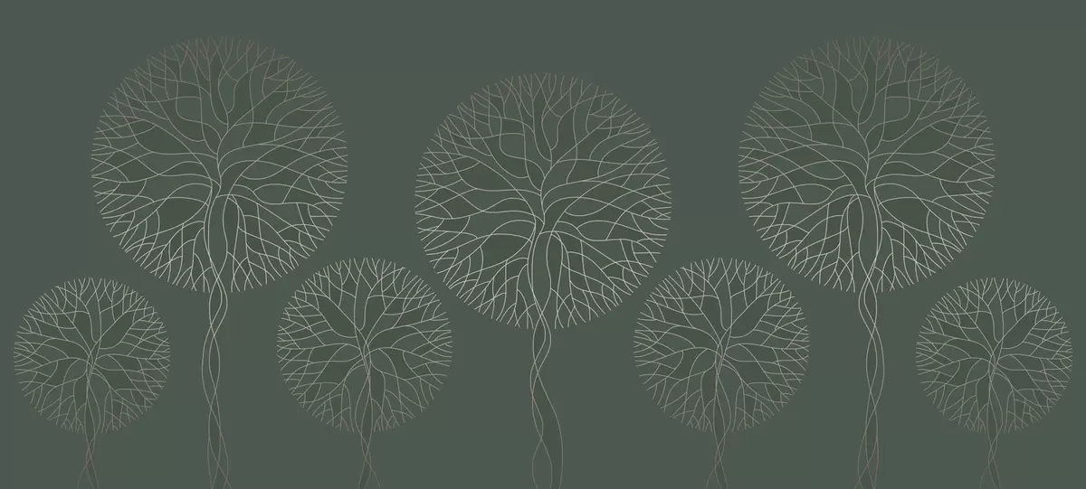 Fototapeedid Fantaasiarikkad lineaarsed puud lopsakate võradega elegantsetes tumerohelistes toonides Nr w05213v2
