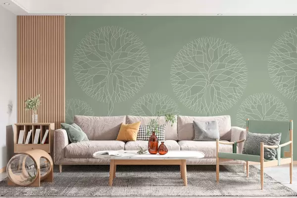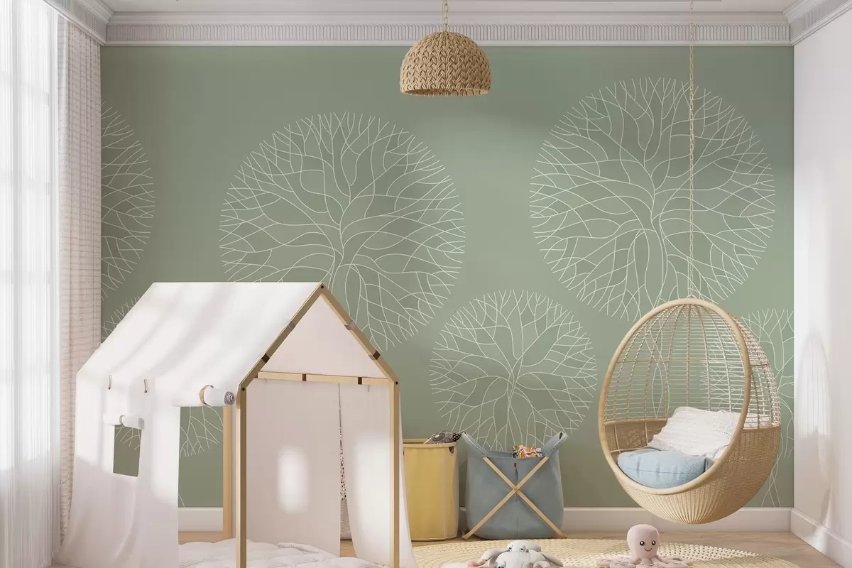 Fototapeedid Fantaasiarikkad lineaarsed puud, millel on lopsakad võrad helerohelistes toonides Nr w05213v6