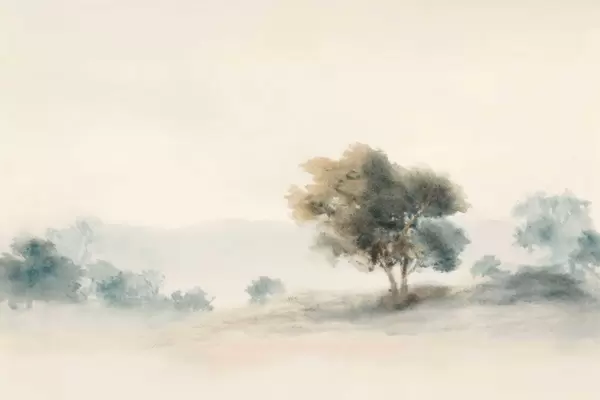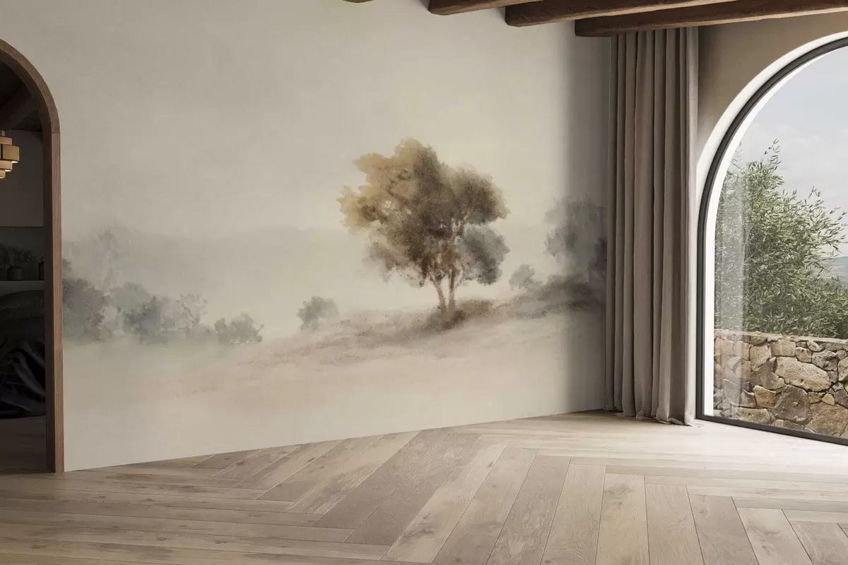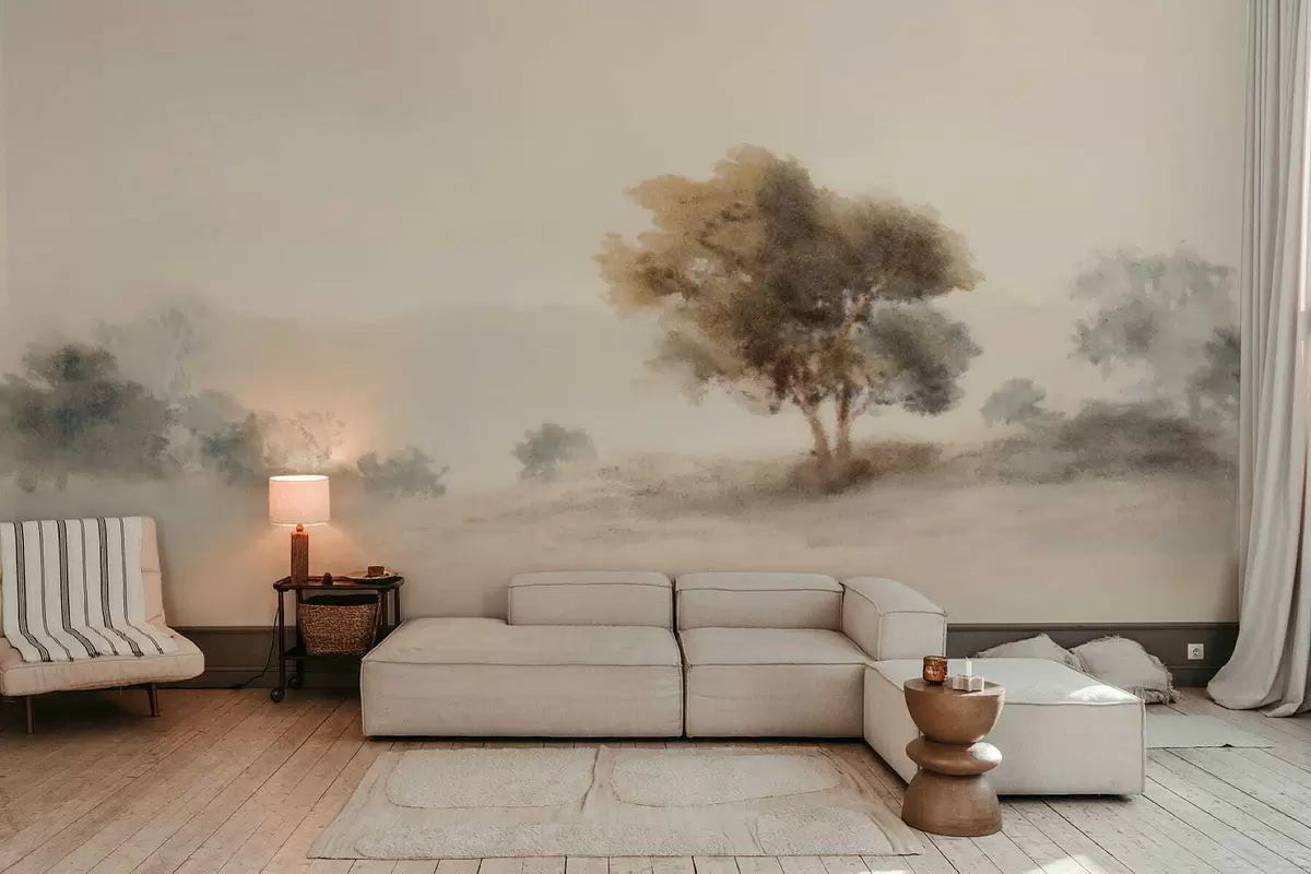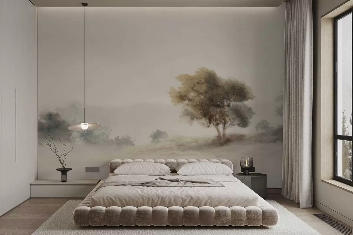 Fototapeedid Minimalistlik maastik üksiku puuga udus Nr w05223