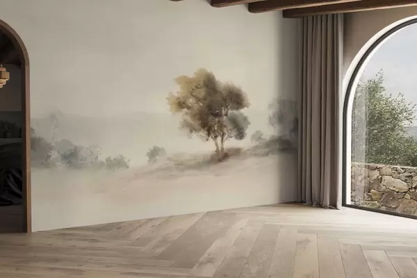 Fototapeedid Minimalistlik maastik üksiku puuga udus Nr w05223