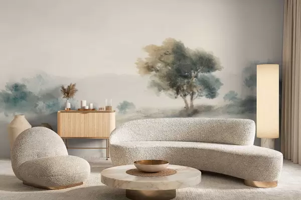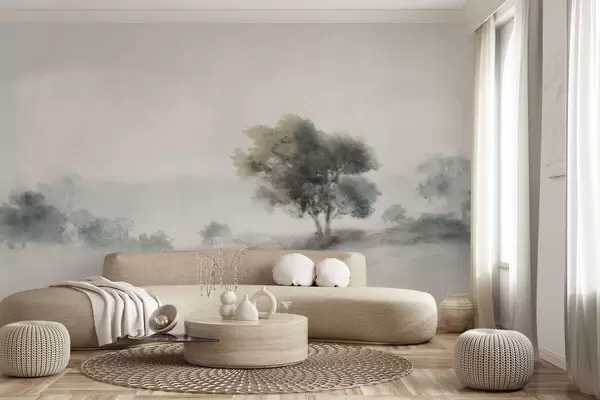 Fototapeedid Rahulik maastik puu ja pehmete ähmastunud vormidega Nr w05223v1