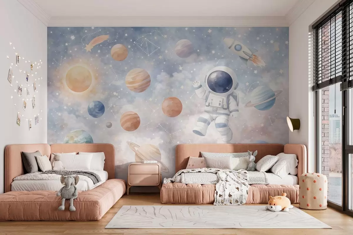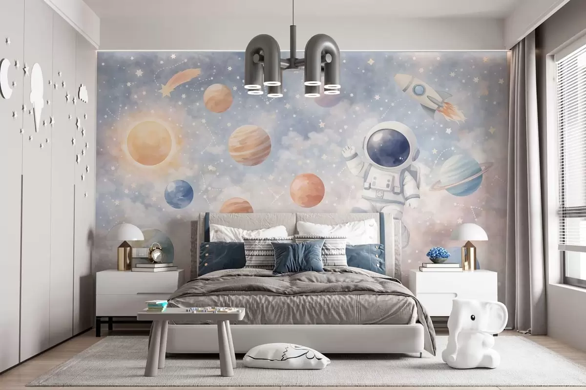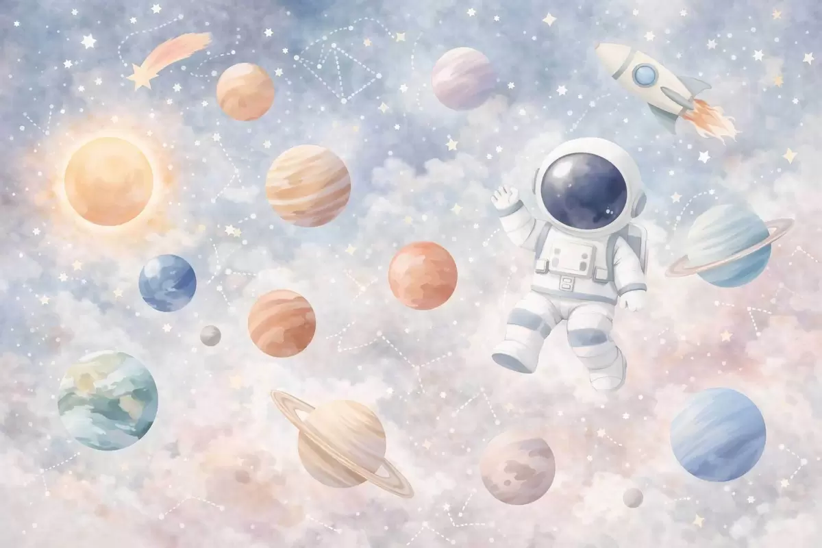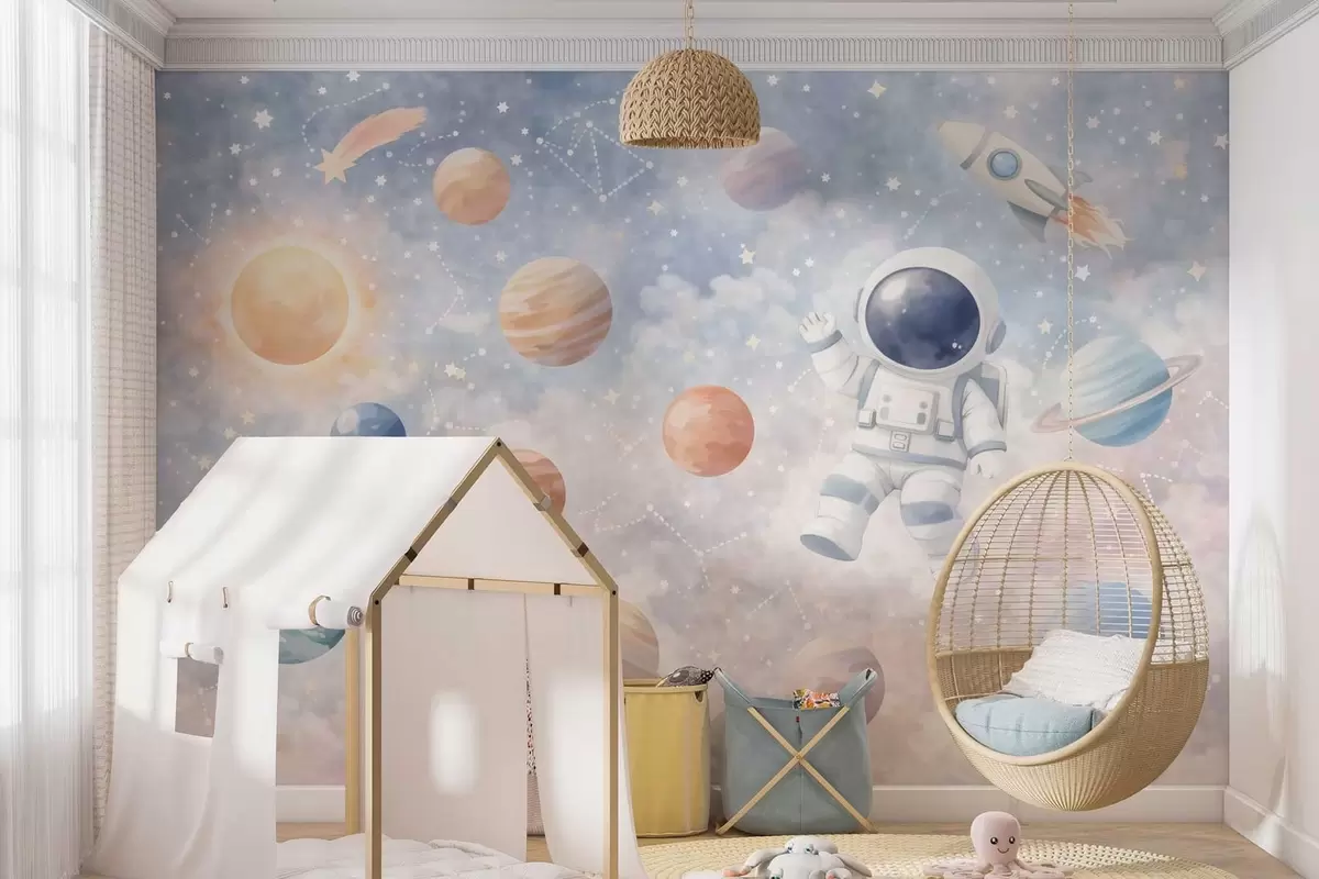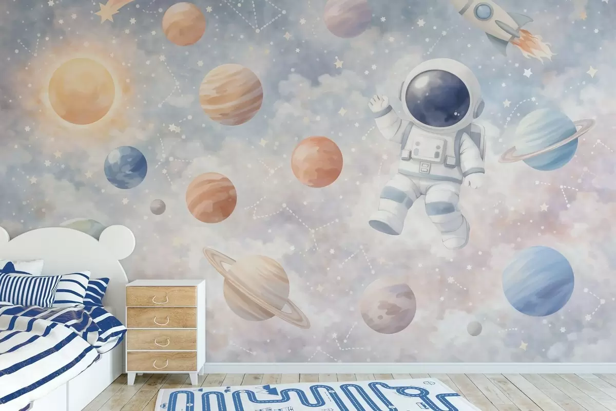 Fototapeedid väike astronaut planeetide ja tähtede seas Nr w05233