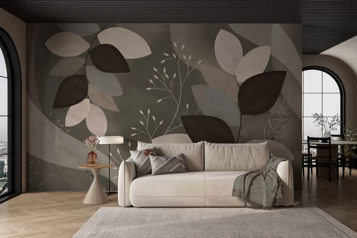 Fototapeedid tumedates toonides lehed ja rohi Nr w05237v1