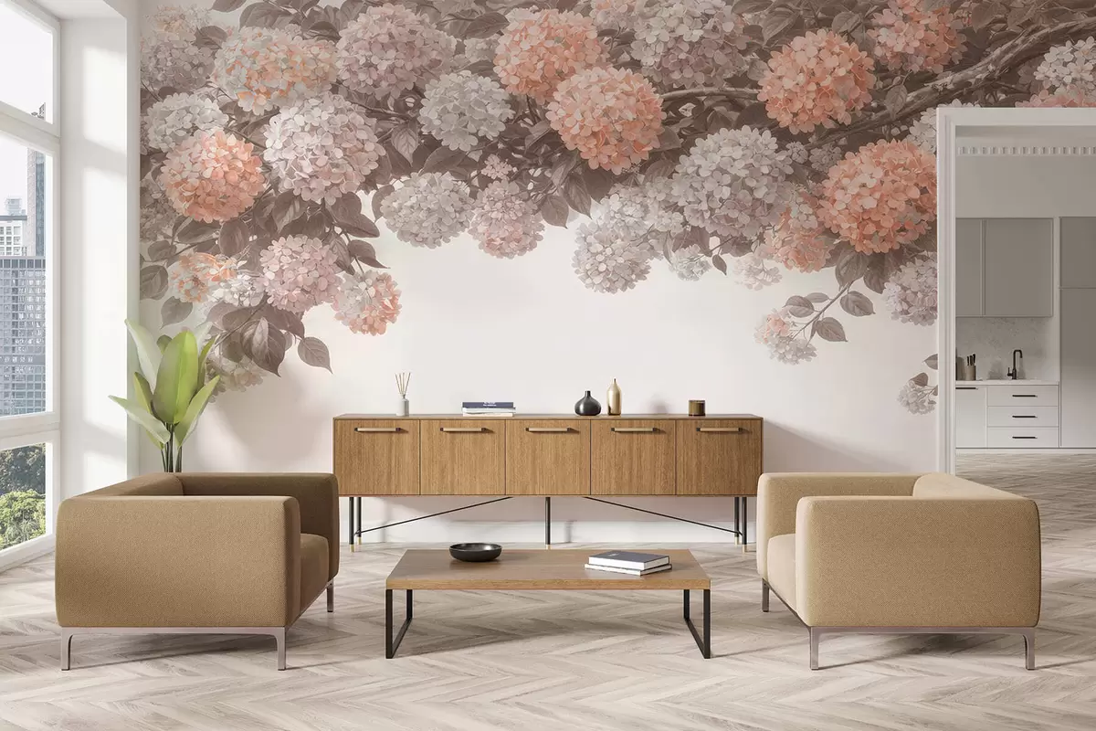 Fototapeedid Värvitud hortensiad rippuvad alla Nr w05250v1