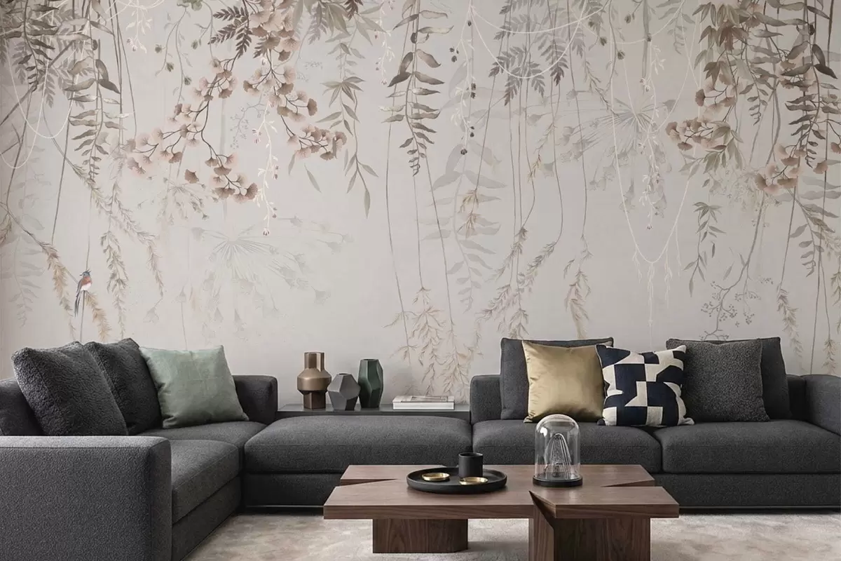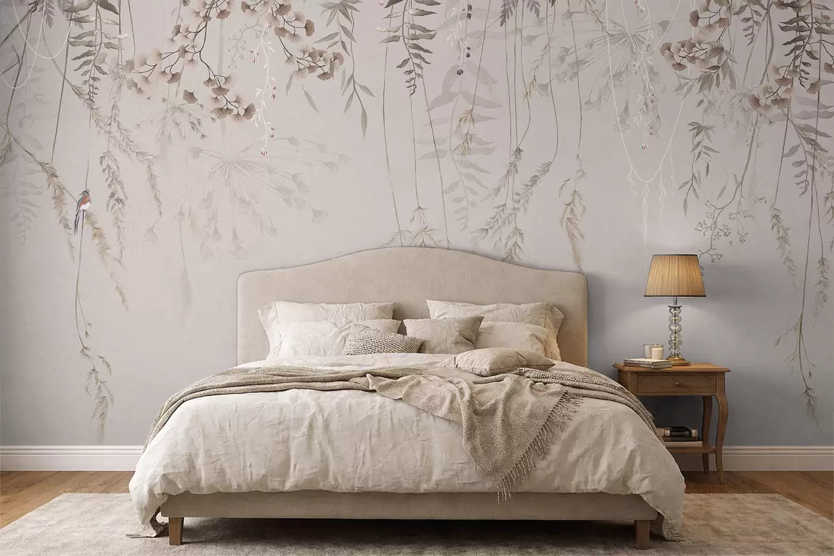Fototapeedid Õrnalt ripuvad rohttaimed heledal taustal Nr w05320v2