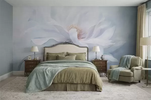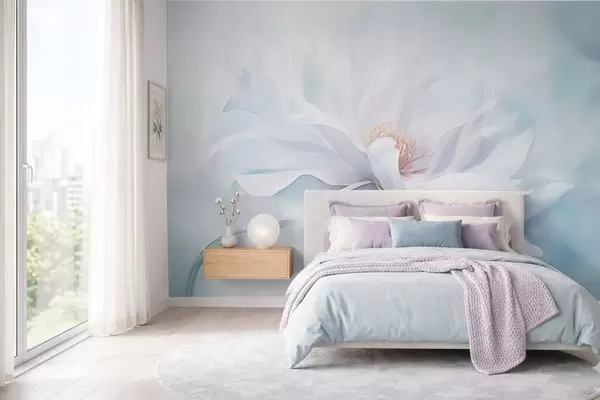 Fototapeedid Pehme valge õis voolavate kroonlehtedega sinisel taustal Nr w05354
