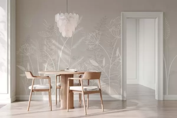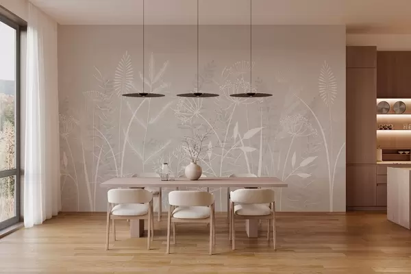 Fototapeedid õrnad käsitsi maalitud looduslikud rohttaimed ja lilled beeži taustal Nr w05383v1