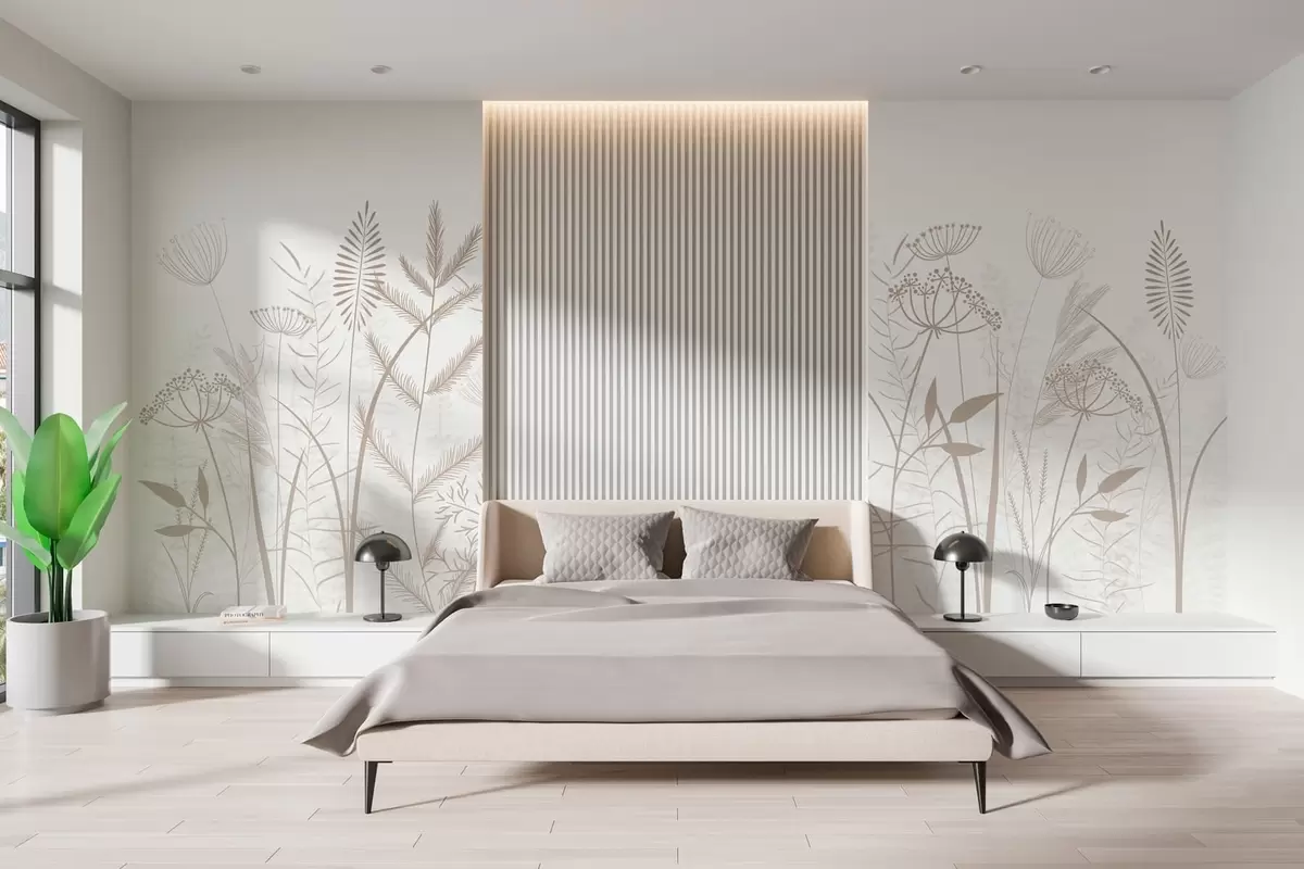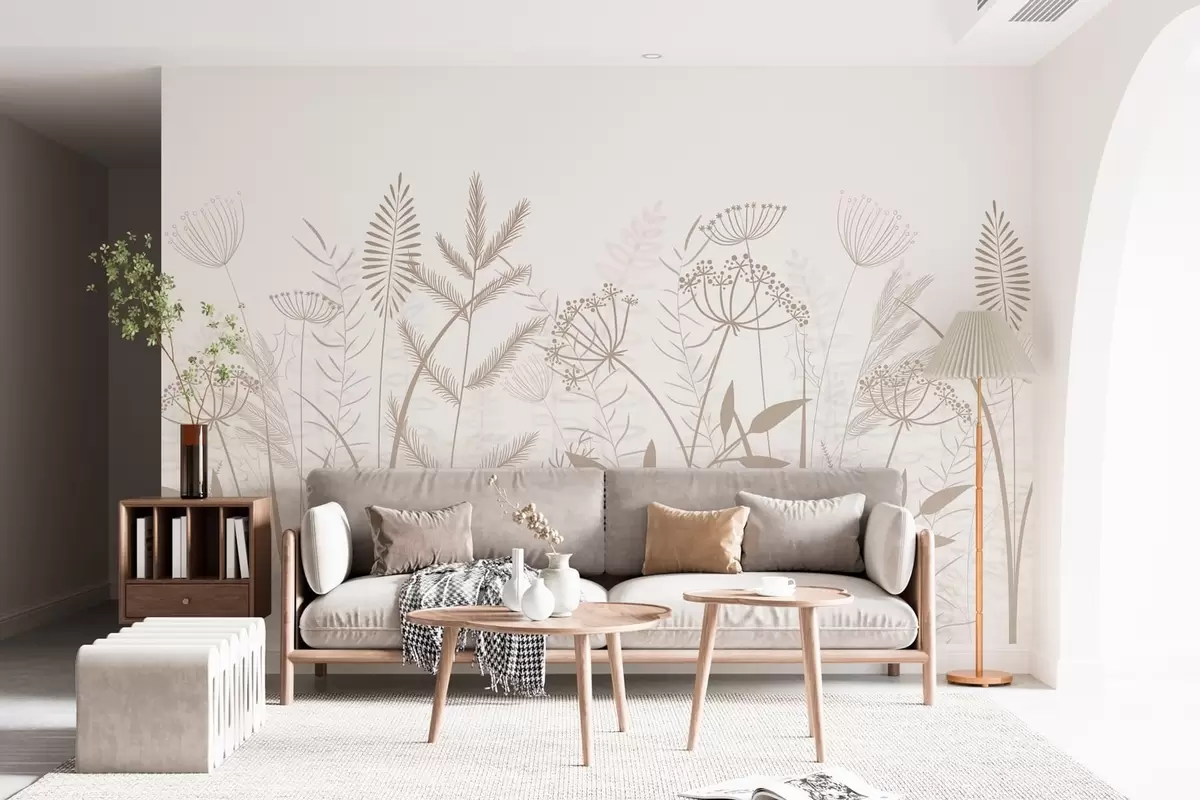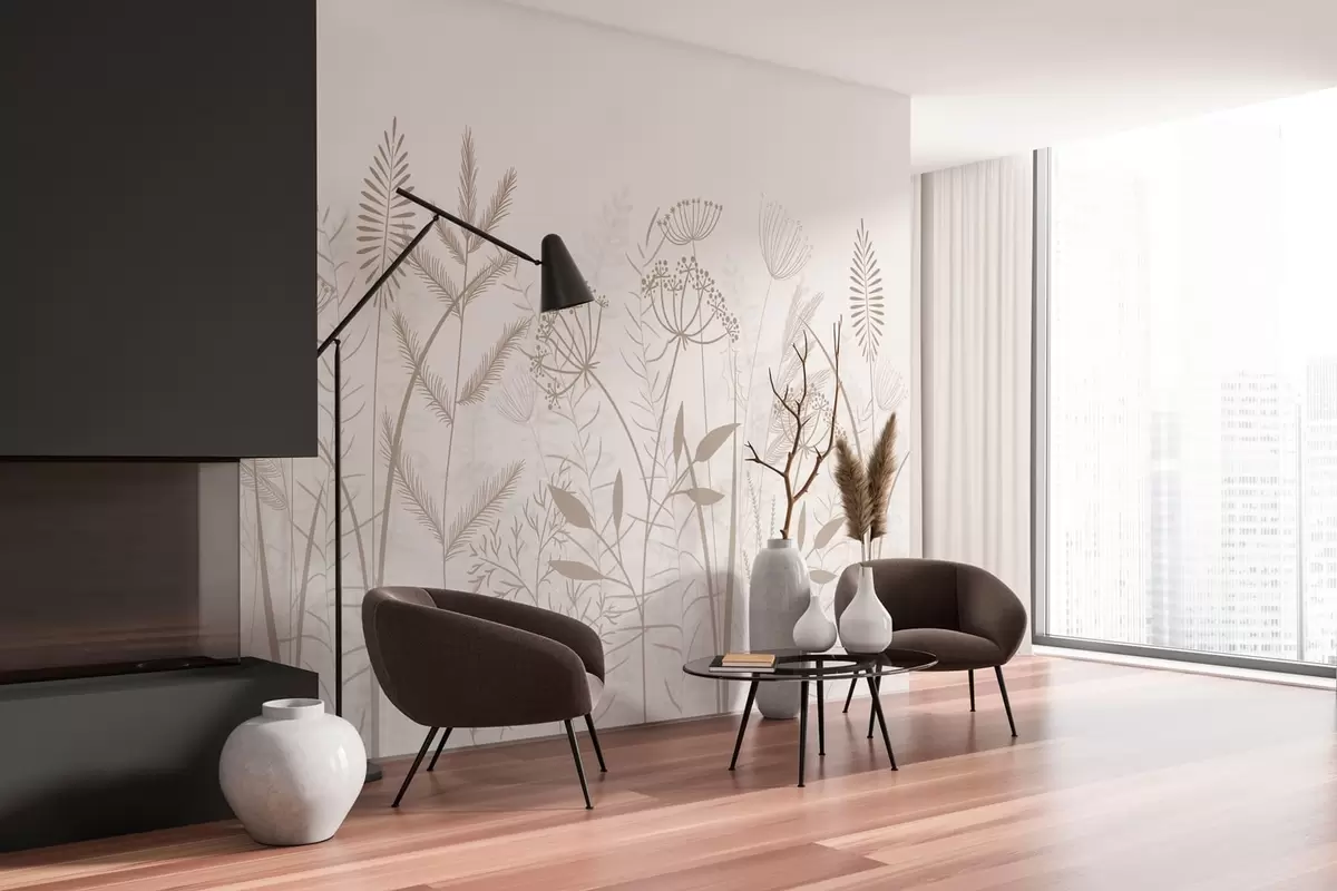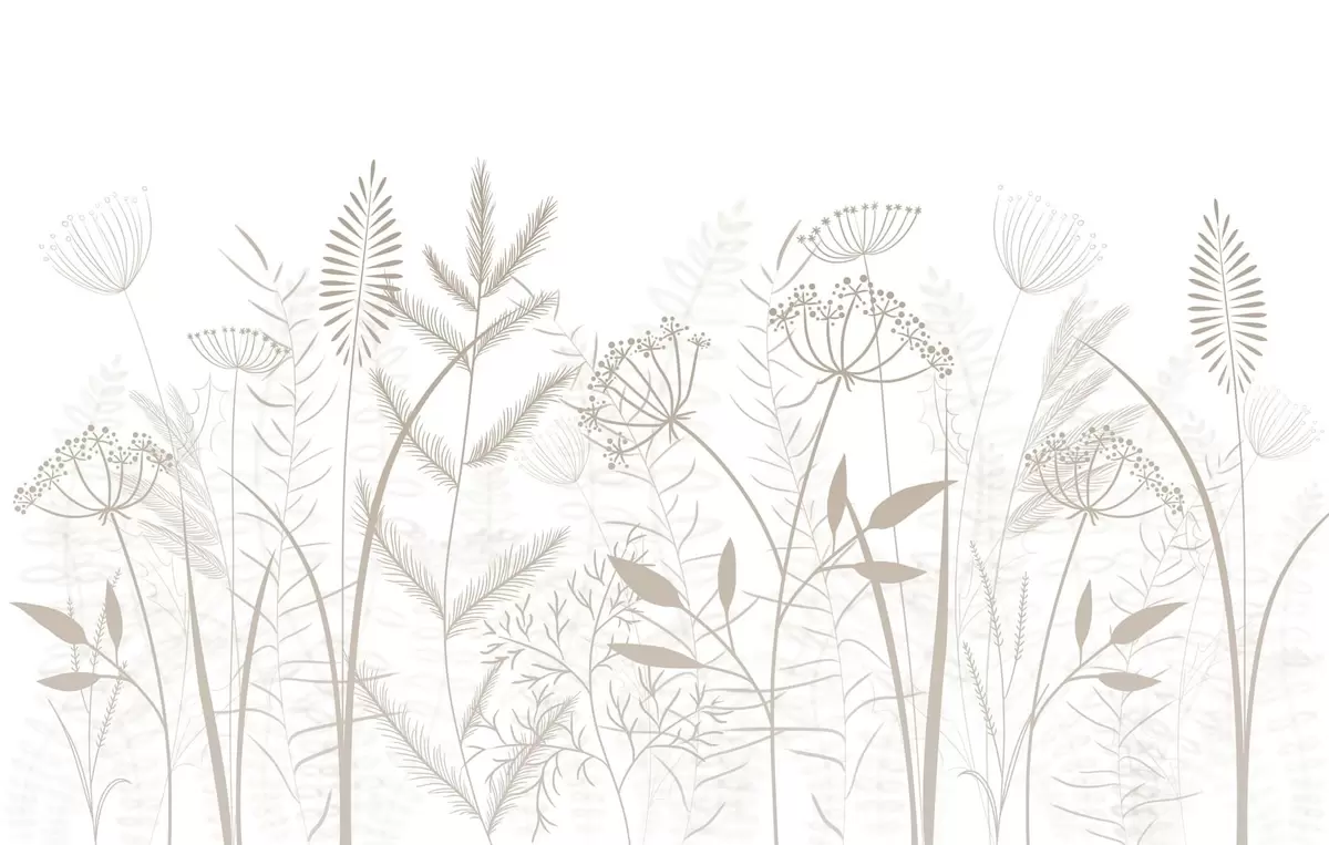 Fototapeedid õrnad käsitsi maalitud looduslikud rohttaimed ja lilled valgel taustal Nr w05383v2