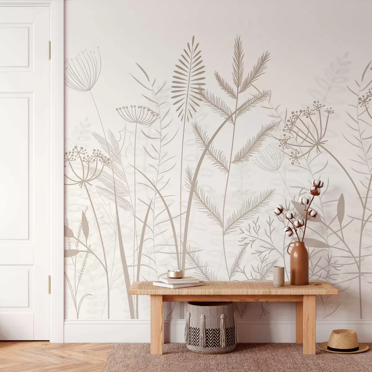 Fototapeedid õrnad käsitsi maalitud looduslikud rohttaimed ja lilled valgel taustal Nr w05383v2