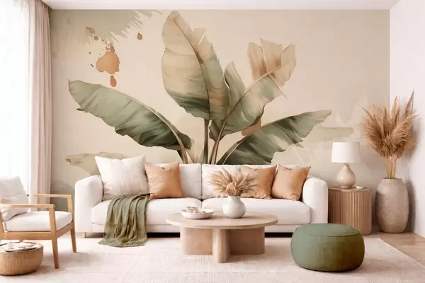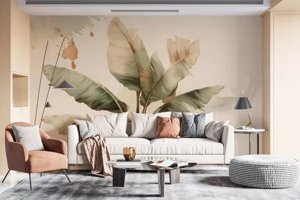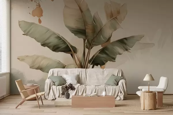 Fototapeedid suur, maaliline banaanilehtede kimp, millel on retrohõngulised pritsmed Nr w05384