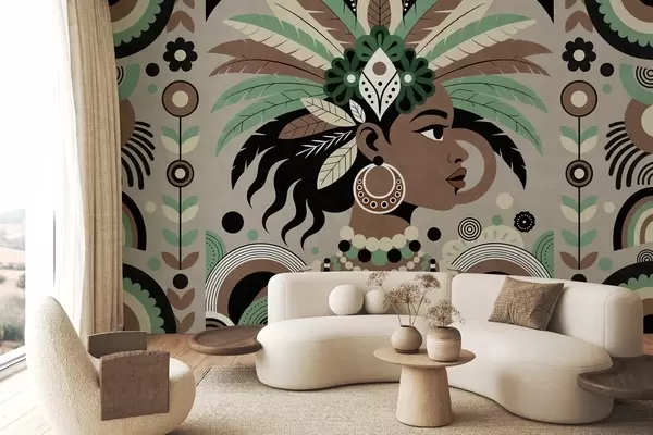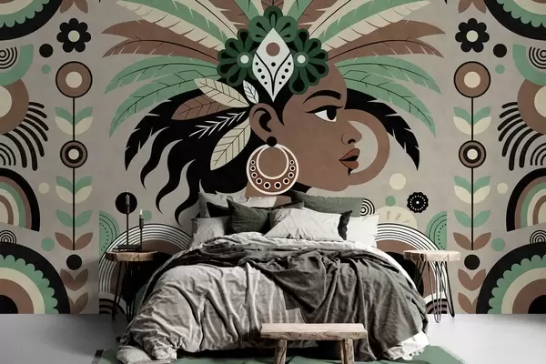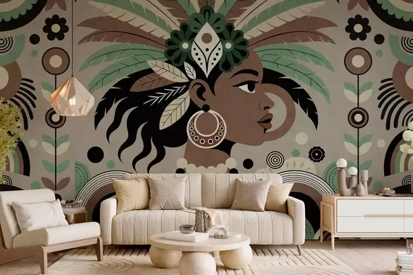 Fototapeedid stiilne Aafrika-teemaline disain rohelistes, pruunides ja beežides toonides Nr w05389v1